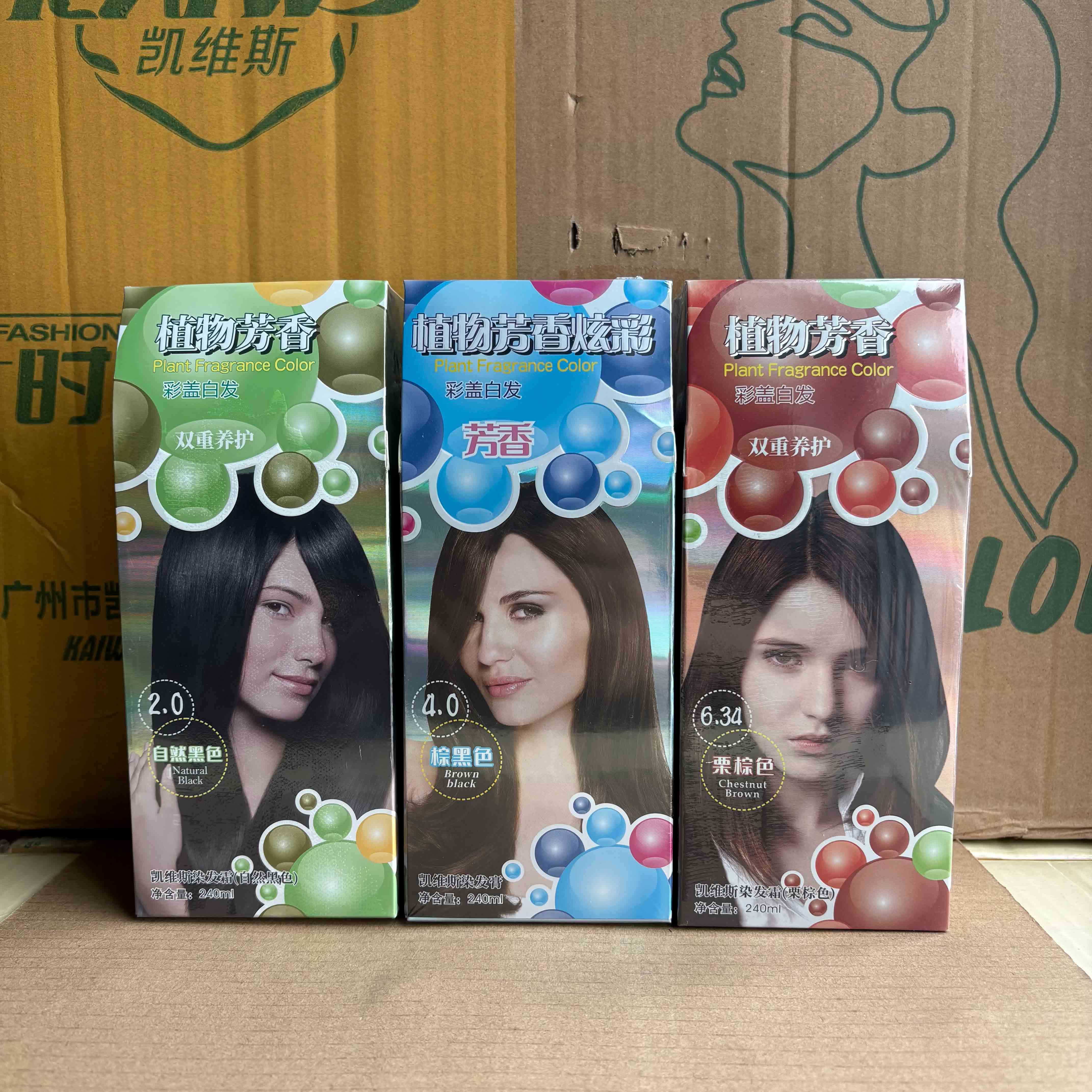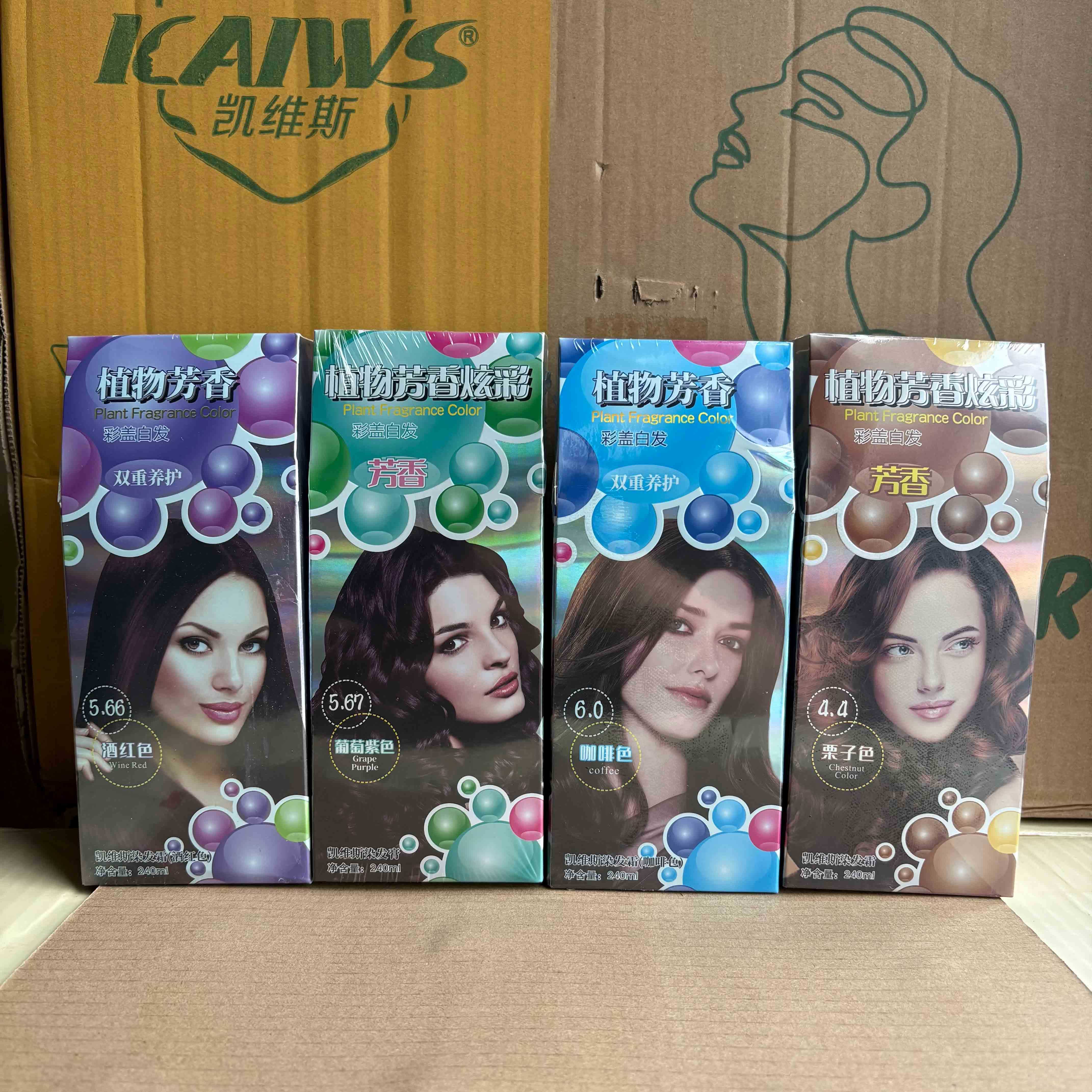 📚 凯维斯格尔士植物芳香染发霜染发剂膏240ml女栗棕酒红自然黑
