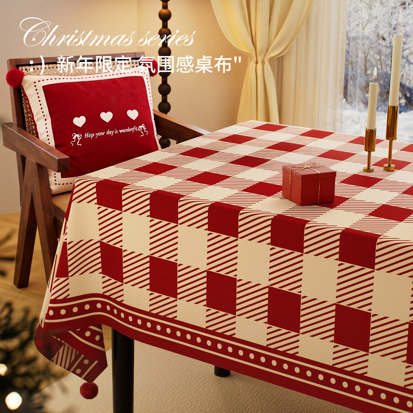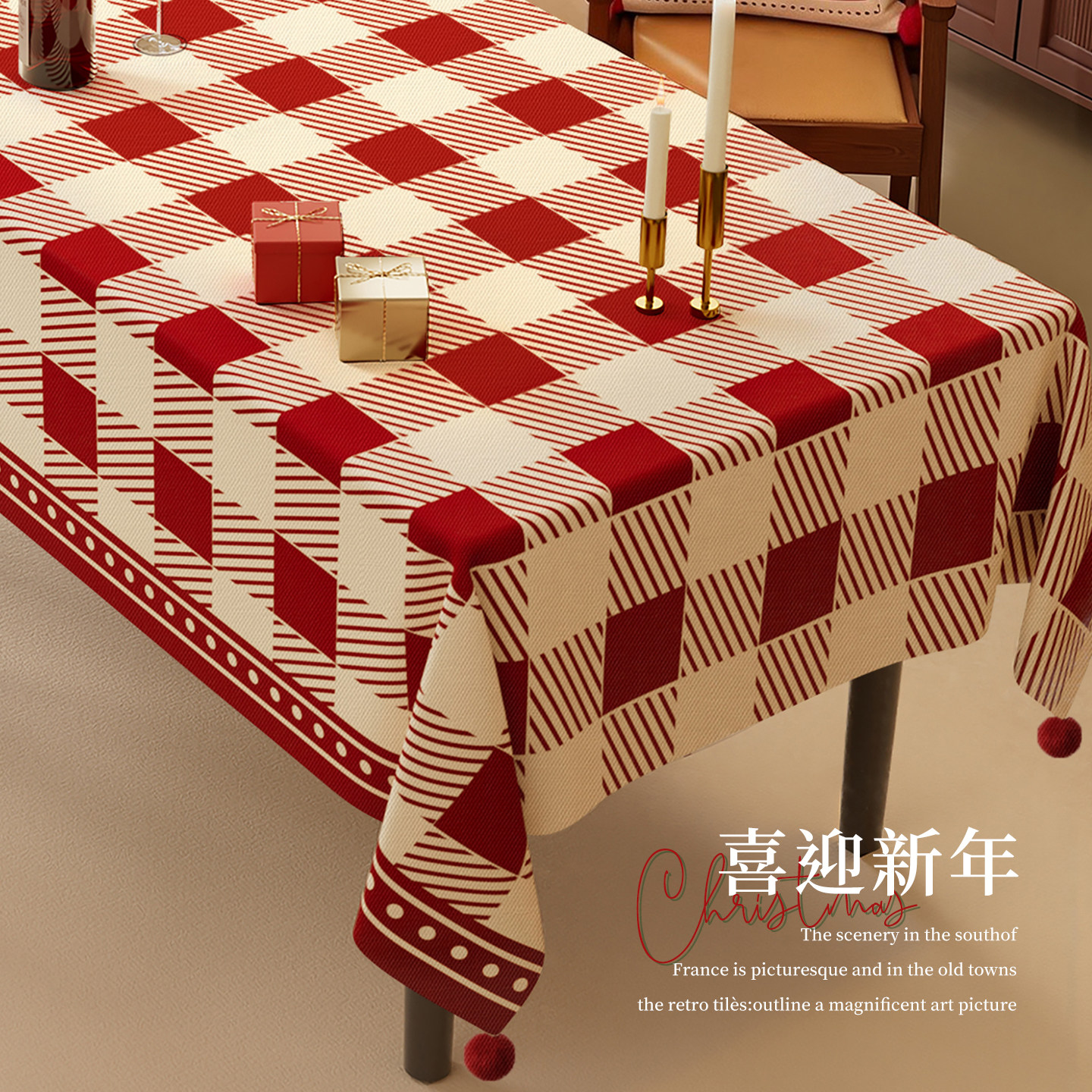 📚 新年桌布免洗防水防油餐桌布2026新款喜庆氛围感红色格子茶几台布