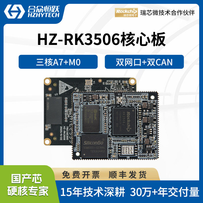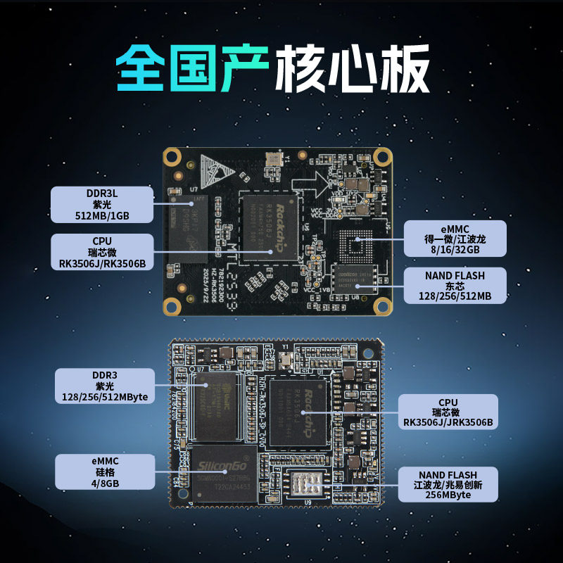 📚 合众恒跃RK3506J工业级核心板瑞芯微全国产嵌入式ARM 兼容树莓派