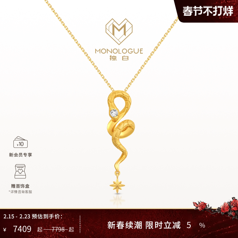 09¥ CZ193 XD52UL0AMAB¥ https://m.tb.cn/h.7zPrWlr MONOLOGUE独白北纬三十度18k金灵蛇项链项链MU458送女情人节礼物 --------------------- 【原售价】7,798元 【优惠券】200元 【券后价】7,598元。