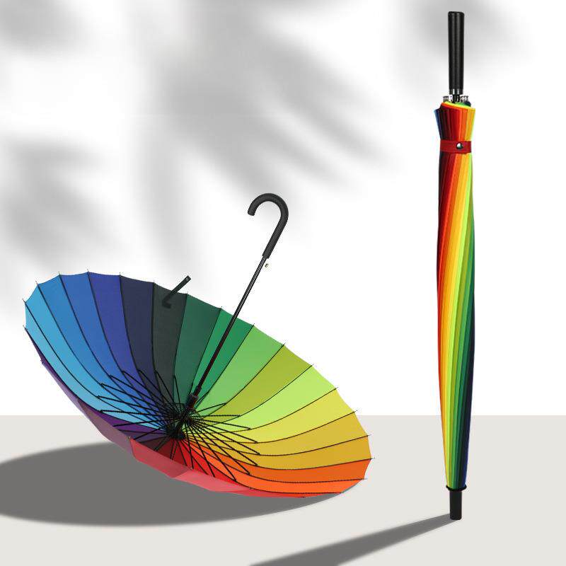 📚 骨自动彩虹长柄超大雨伞抗风晴雨伞直杆伞男女双人抗风暴
