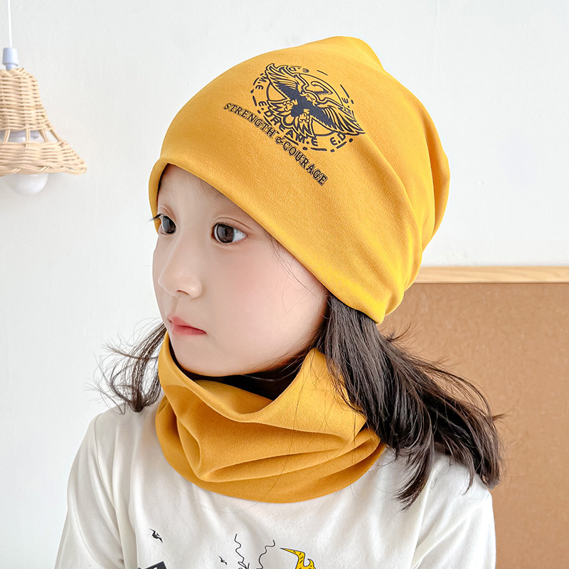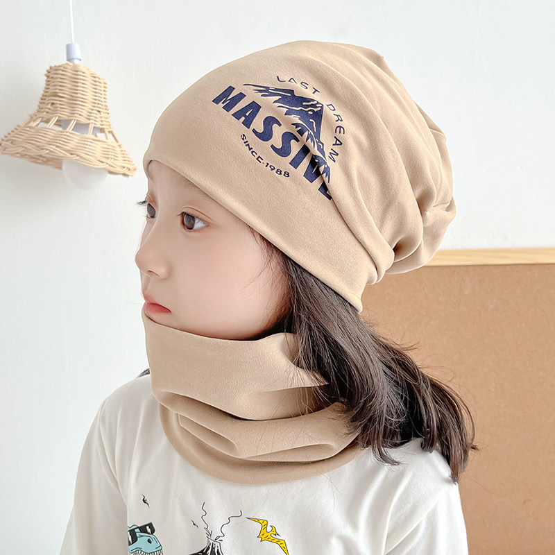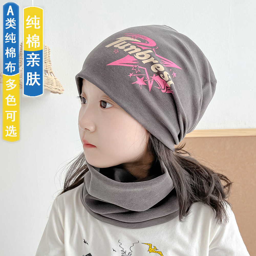 📚 潮牌男女童堆堆帽冷帽纯棉女宝洋气儿童包头帽子秋冬护耳防风脖套