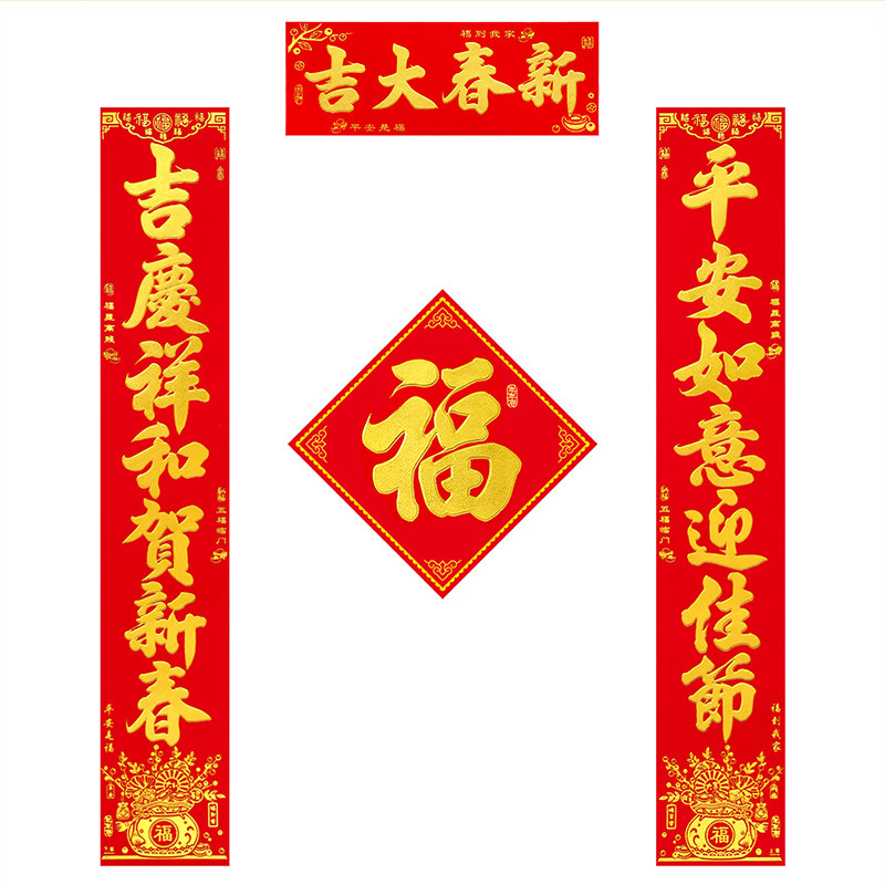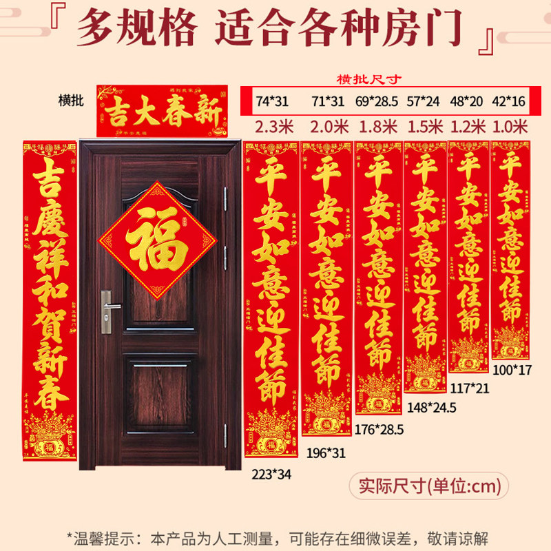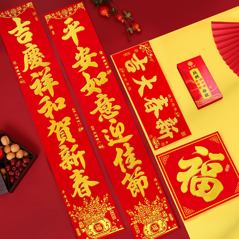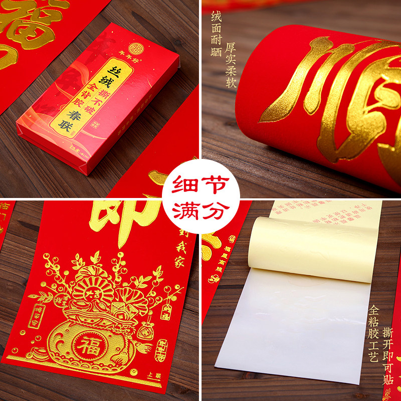 📚 2026新款全年红绒面金字对联植绒春联家用大门联春节装饰带全背胶