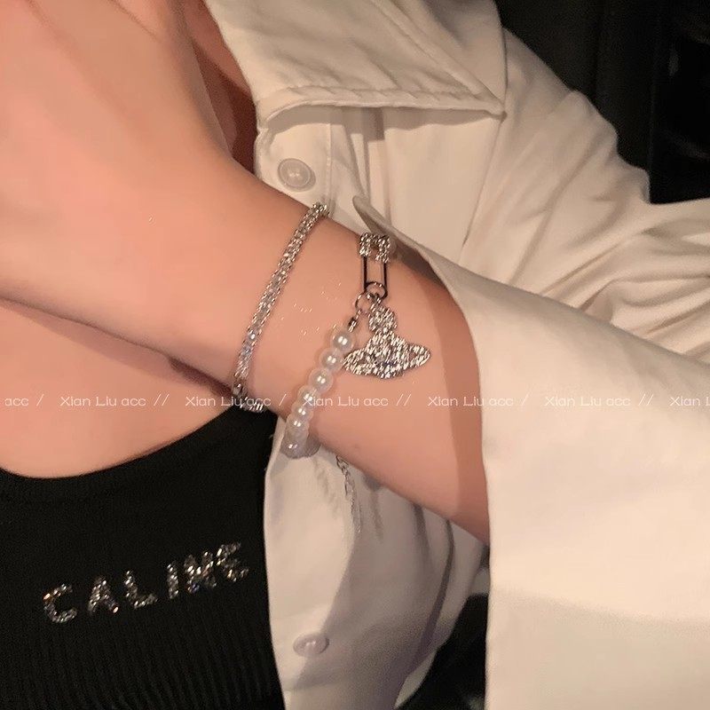 📚 西太后土星珍珠手链轻奢小众高级感串珠手串精致微镶锆石手镯饰品