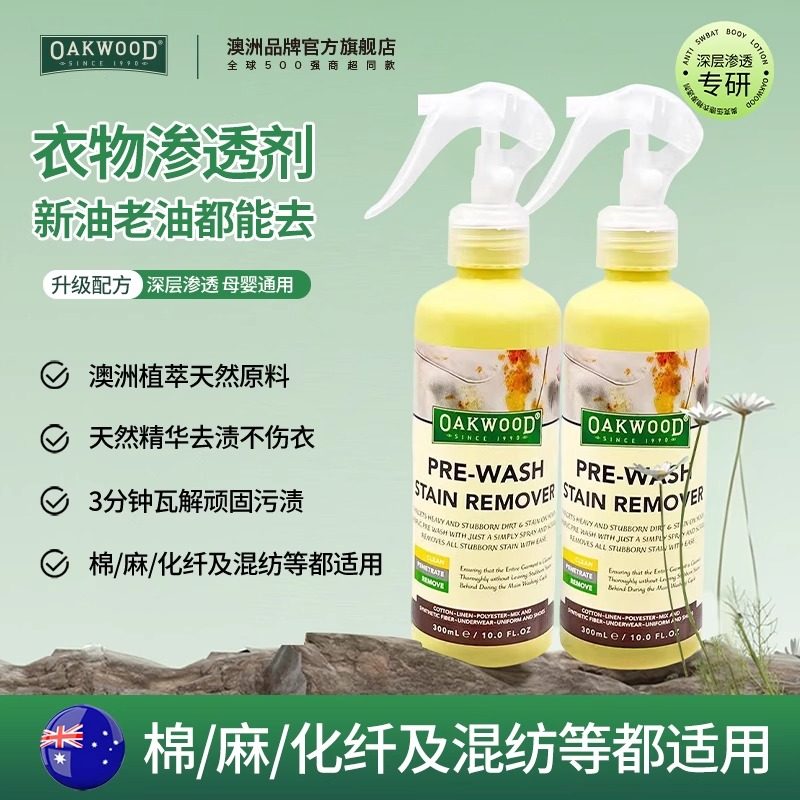 📚 OAKWOOD衣物渗透分解剂果汁墨酱料渍专用洗衣预处理易漂洗无刺激