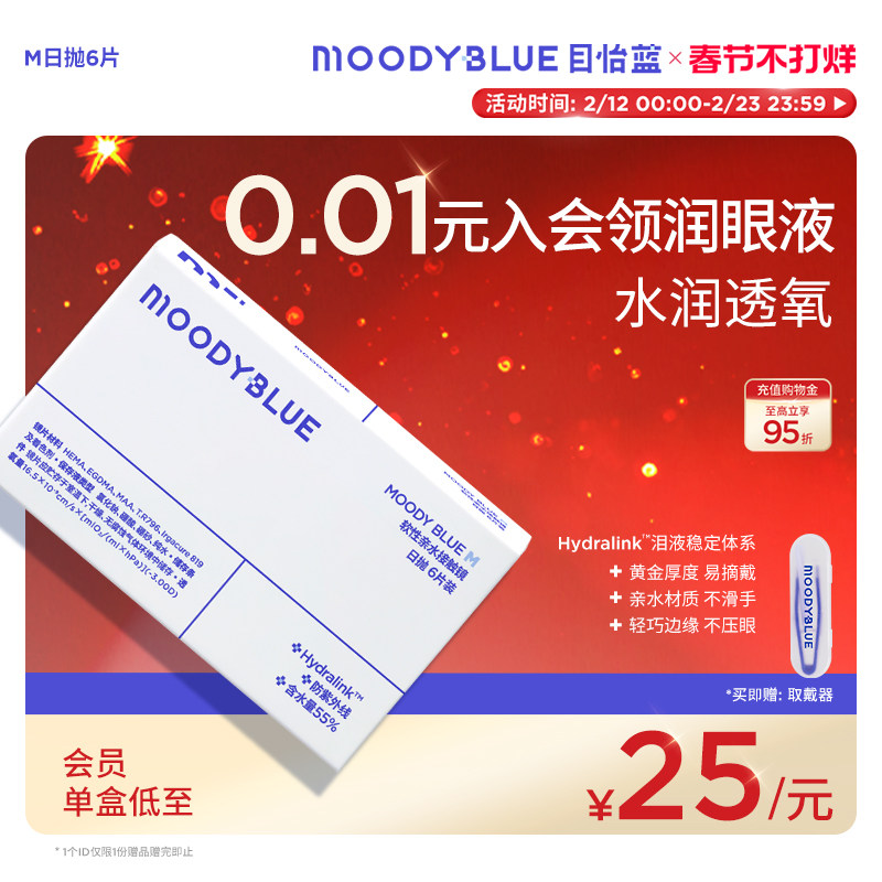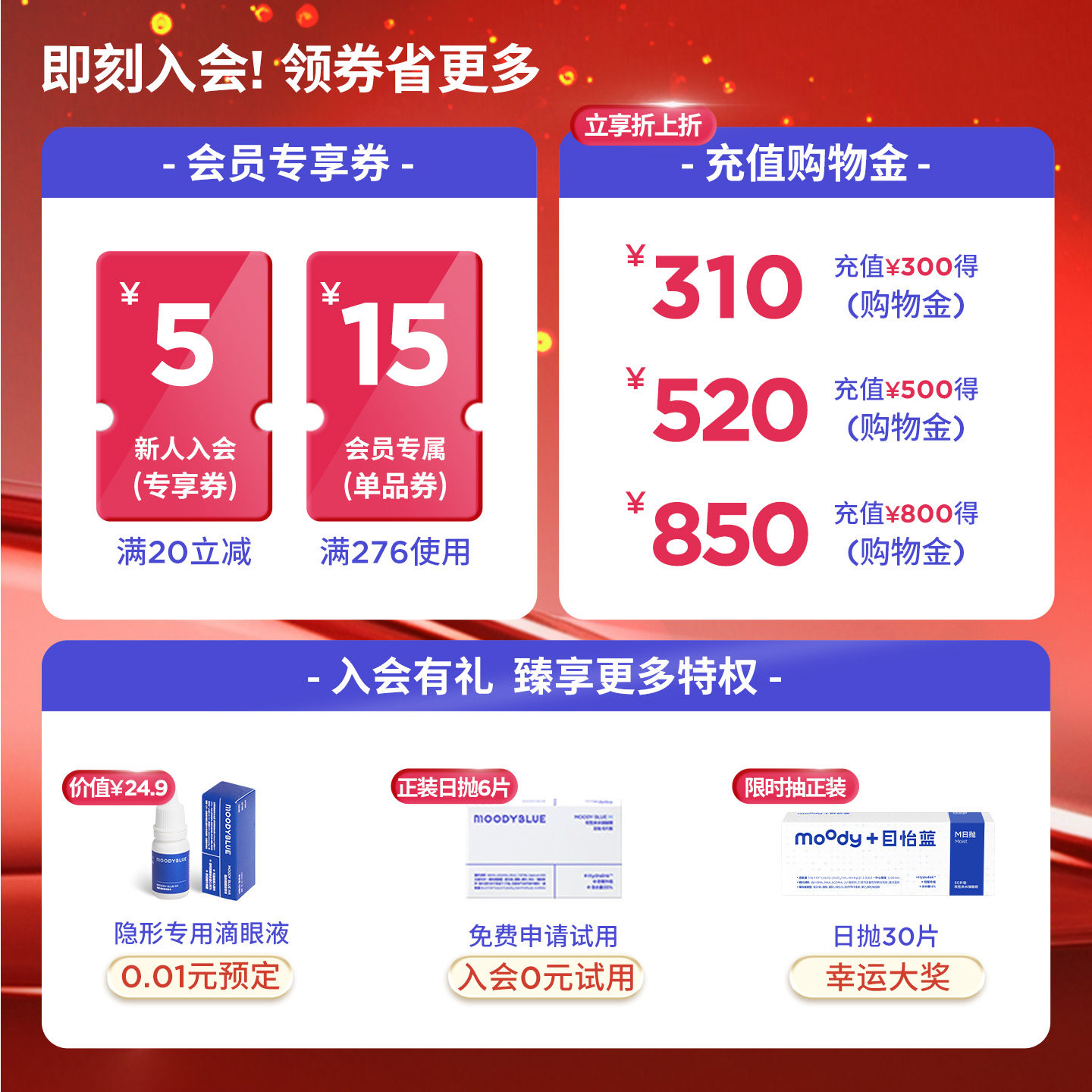 📚 MOODYBLUE隐形眼镜日抛6片目怡蓝新手运动近视透明片水凝胶官方