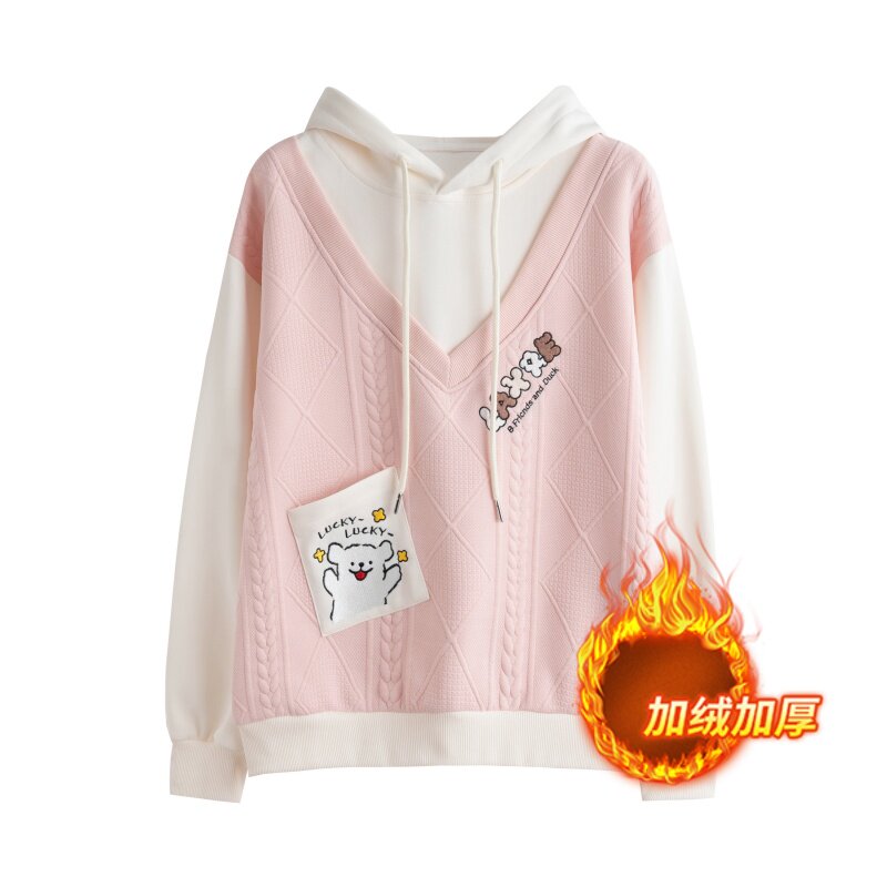 📚 小个子连帽卫衣女秋冬2025新款宽松加绒加厚初中生假两件上衣外套