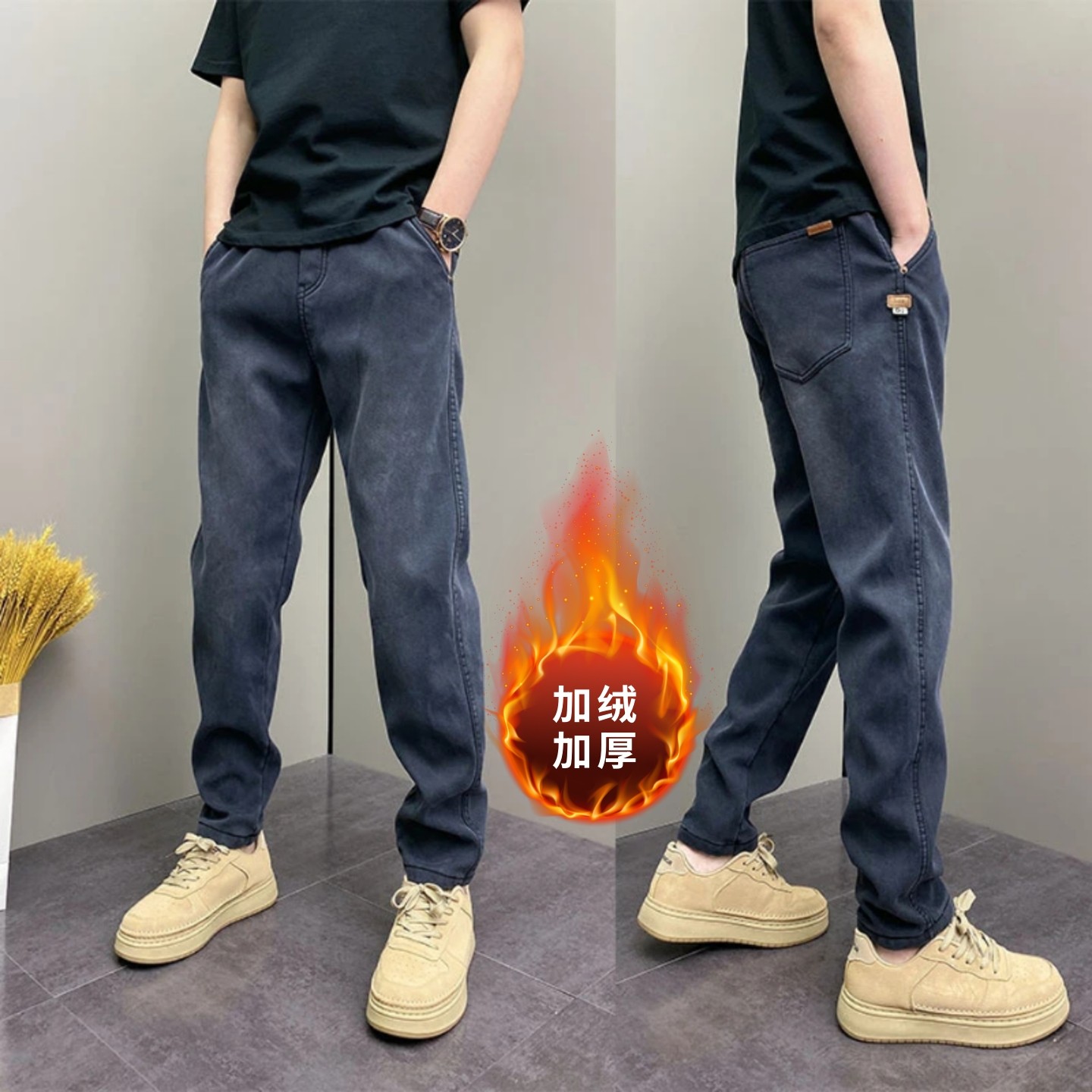 📚 冬季爆款时尚潮牌ins休闲裤男士加绒加厚百搭卫裤美式痞帅牛仔裤