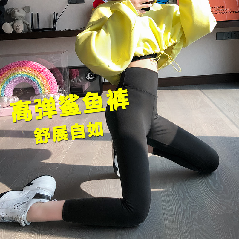 📚 鲨鱼路裤外穿显瘦哑光打底沙鱼裤女加绒紧身八分裤秋冬鲨皮裤瘦腿