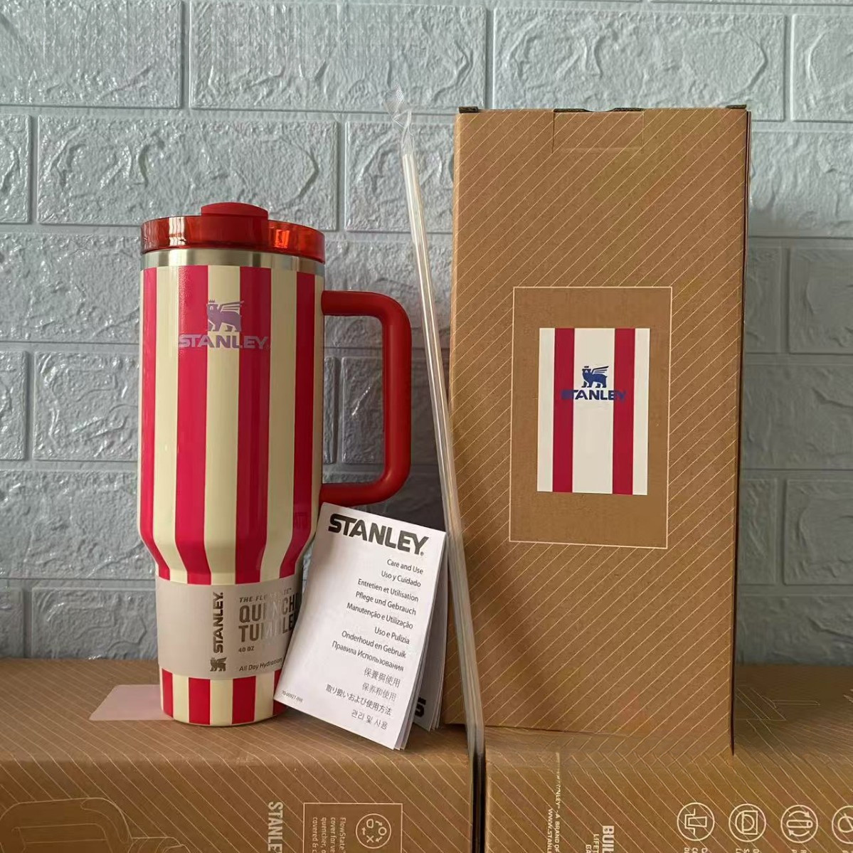 📚 正品stanley条纹保温杯车载保温杯办公咖啡吸管水杯史丹利保冷