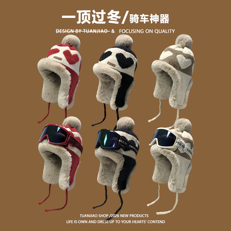 📚 哈尔滨旅游雪地帽子女冬季东北加绒保暖防寒帽防风骑车护耳雷锋帽
