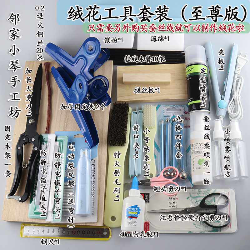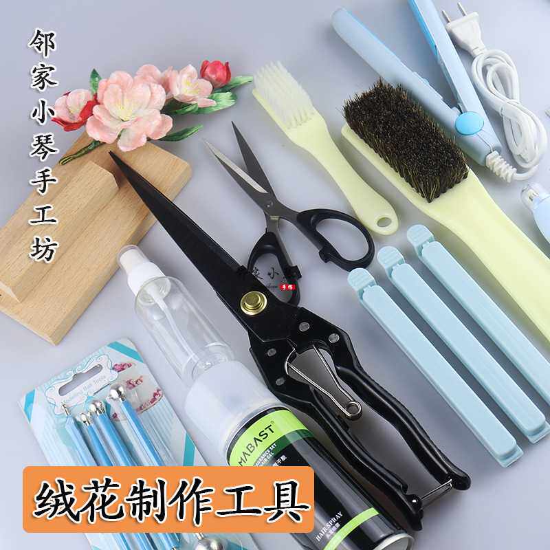 📚 非遗diy绒花新手工具实木搓丝板猪鬃刷夹子修绒打尖剪刀退火铜线