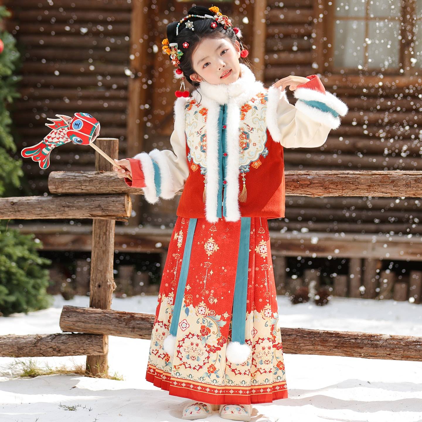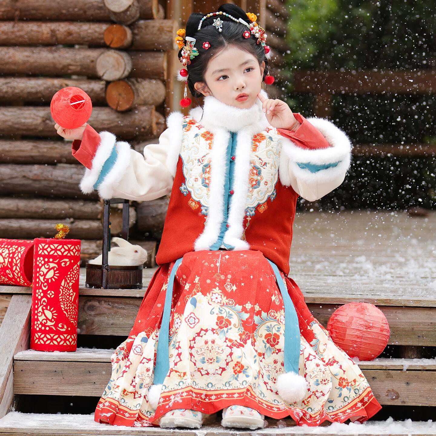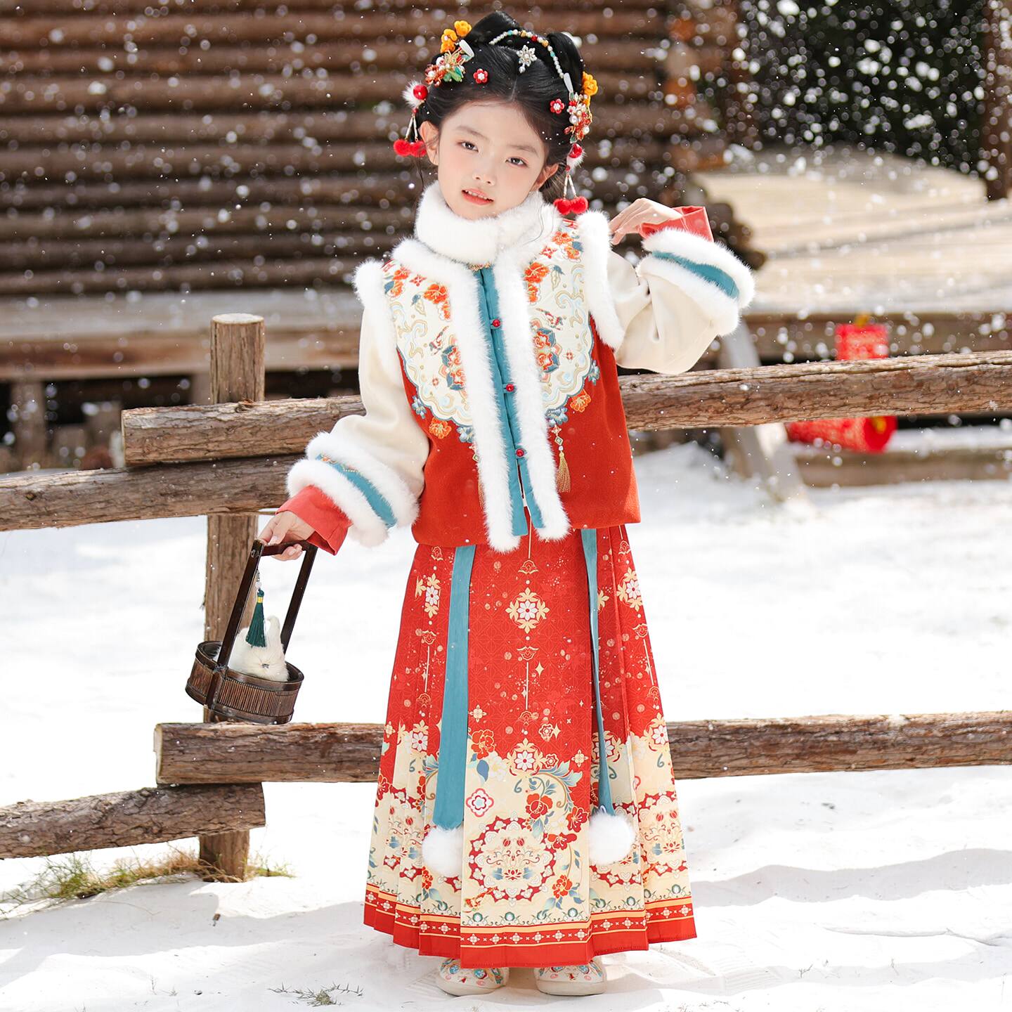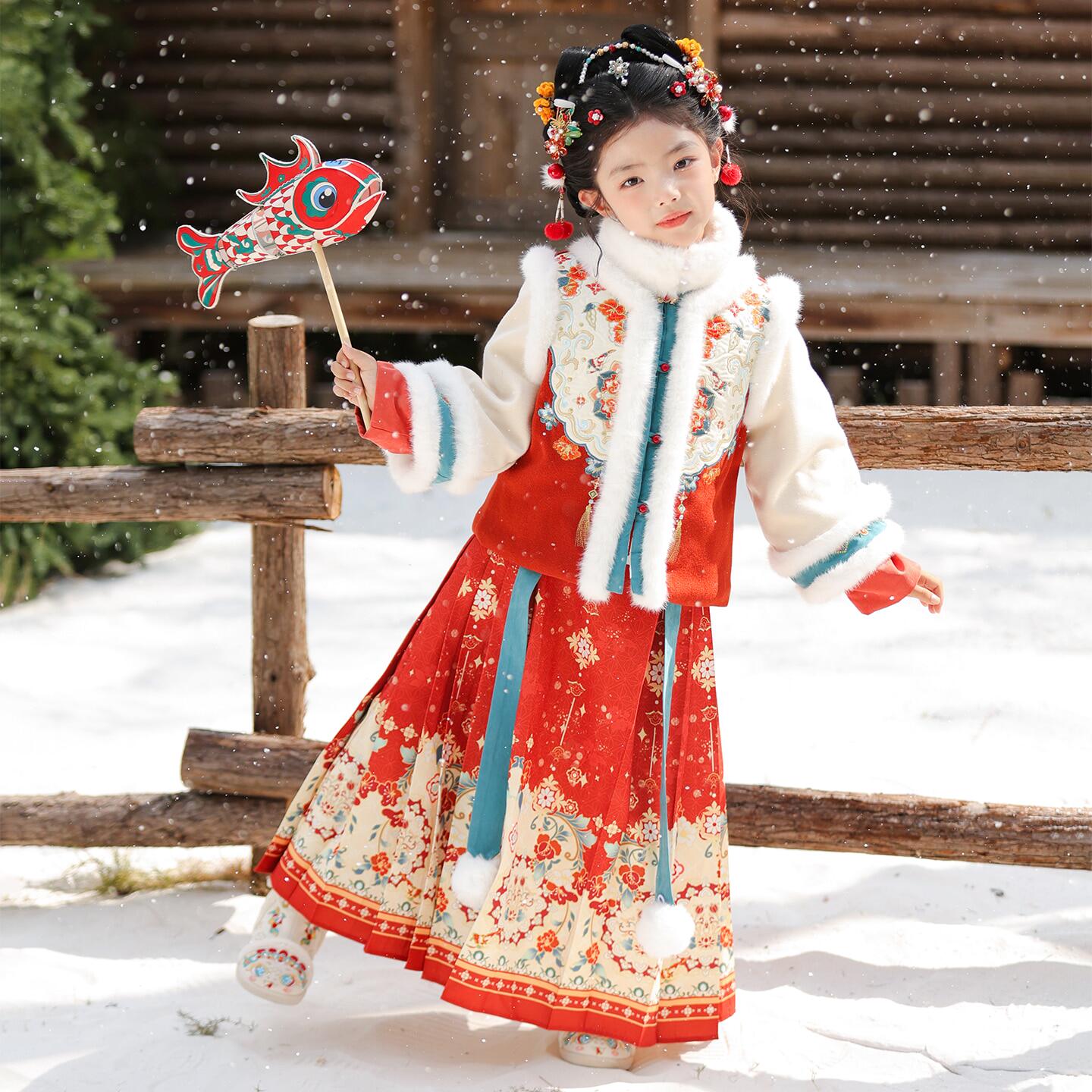 📚 汉服女童冬季加厚明制马面裙套装儿童唐装拜年服秋冬新年冬装古装