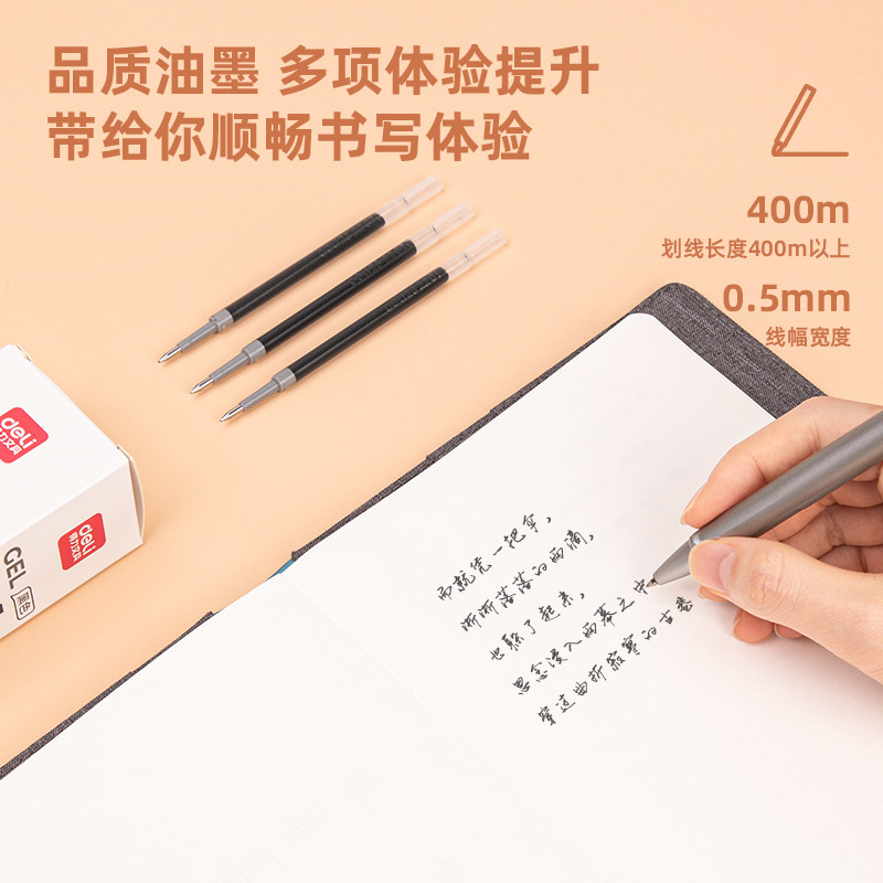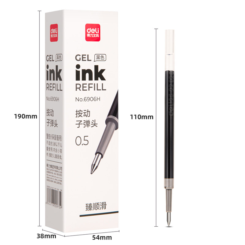 📚 得力臻顺滑笔芯6906H按动笔替换芯0.5mm子弹头水笔芯红蓝黑中性笔替芯学生用商务办公签字笔水笔用书写工具