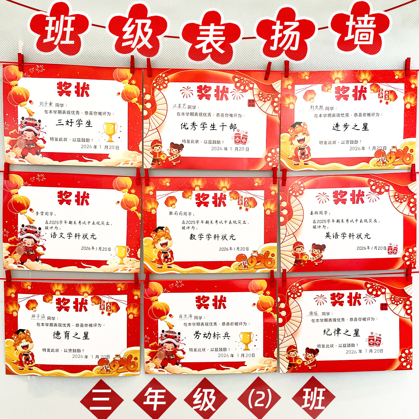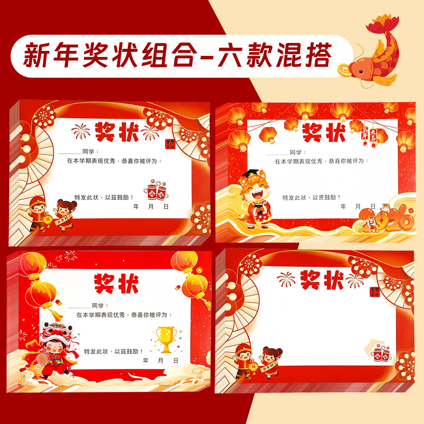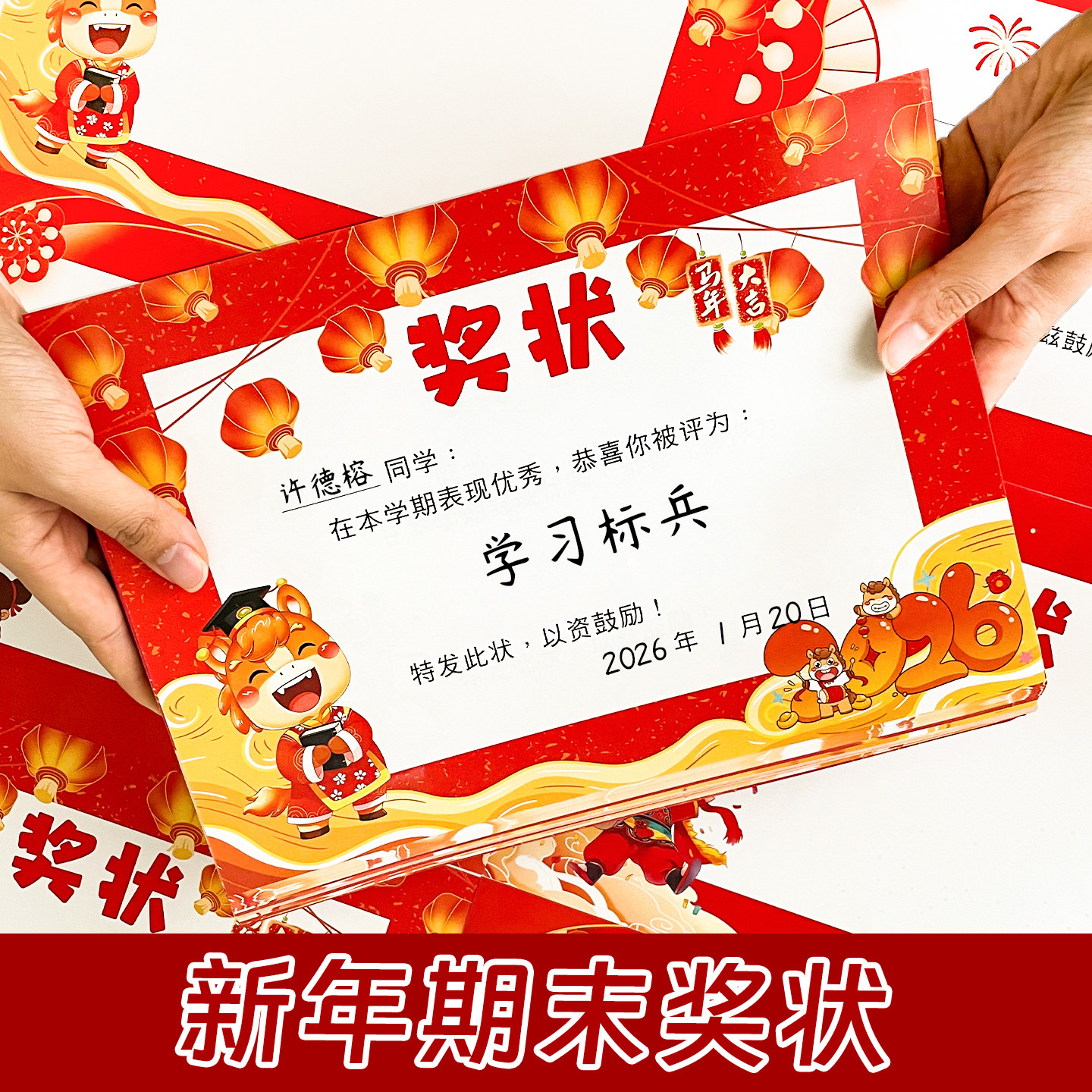 📚 2026新款创意马年期末奖状可定制幼儿园春节新年期末教师班级奖励优秀学生表扬信红色喜庆内芯荣誉空白证书纸
