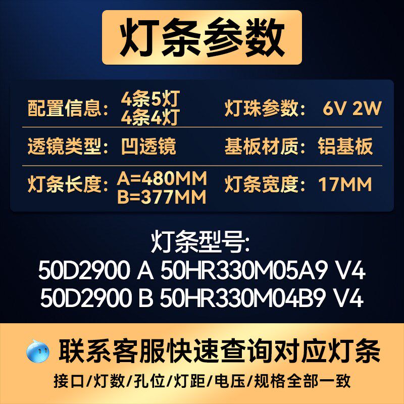 📚 适用 D50A810 L50E5800A-UD L50P2-UD D50A730U D50A630U电视灯条