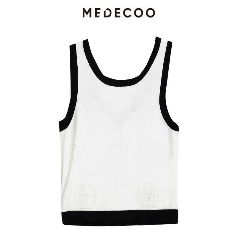 📚 MEDECOO/墨蒂珂2025夏季新款 撞色提花无袖套头针织衫女SIX40103