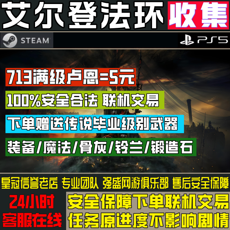 📚 steam/PS5艾尔登法环黑夜君临存档满级刷卢恩魂老头环武器锻造石
