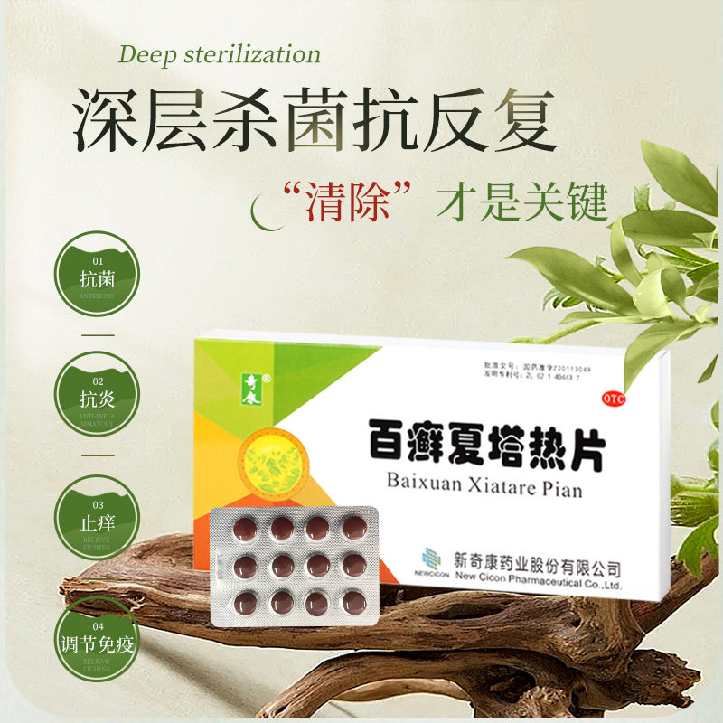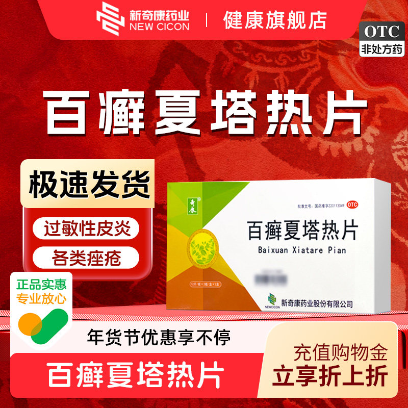 📚 新奇康百癣夏塔热片72片祛痘痤疮手足癣症脚气过敏皮炎搭乳膏中药