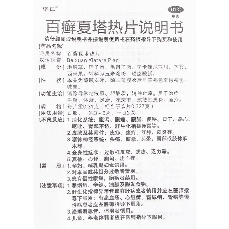 📚 济仁百癣夏塔热片36片过敏性皮炎痤疮花斑癣手足癣佰白百藓夏塔热