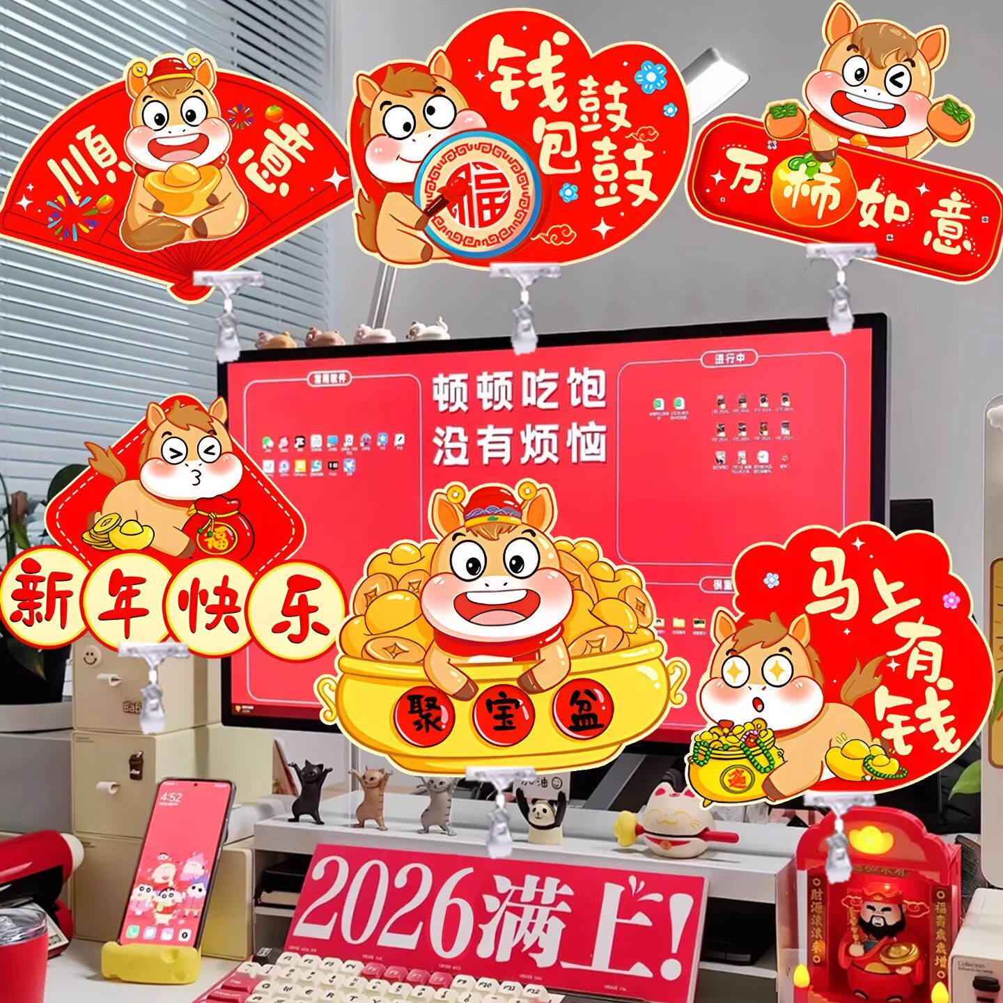 📚 2026马年新年元旦工位桌面装饰店里公司过年年会跨年春节氛围布置