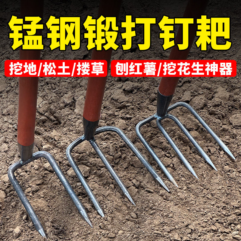 📚 钉耙农具铁耙子松土神器二三齿耙刨红薯锄头家用种菜翻地农用工具