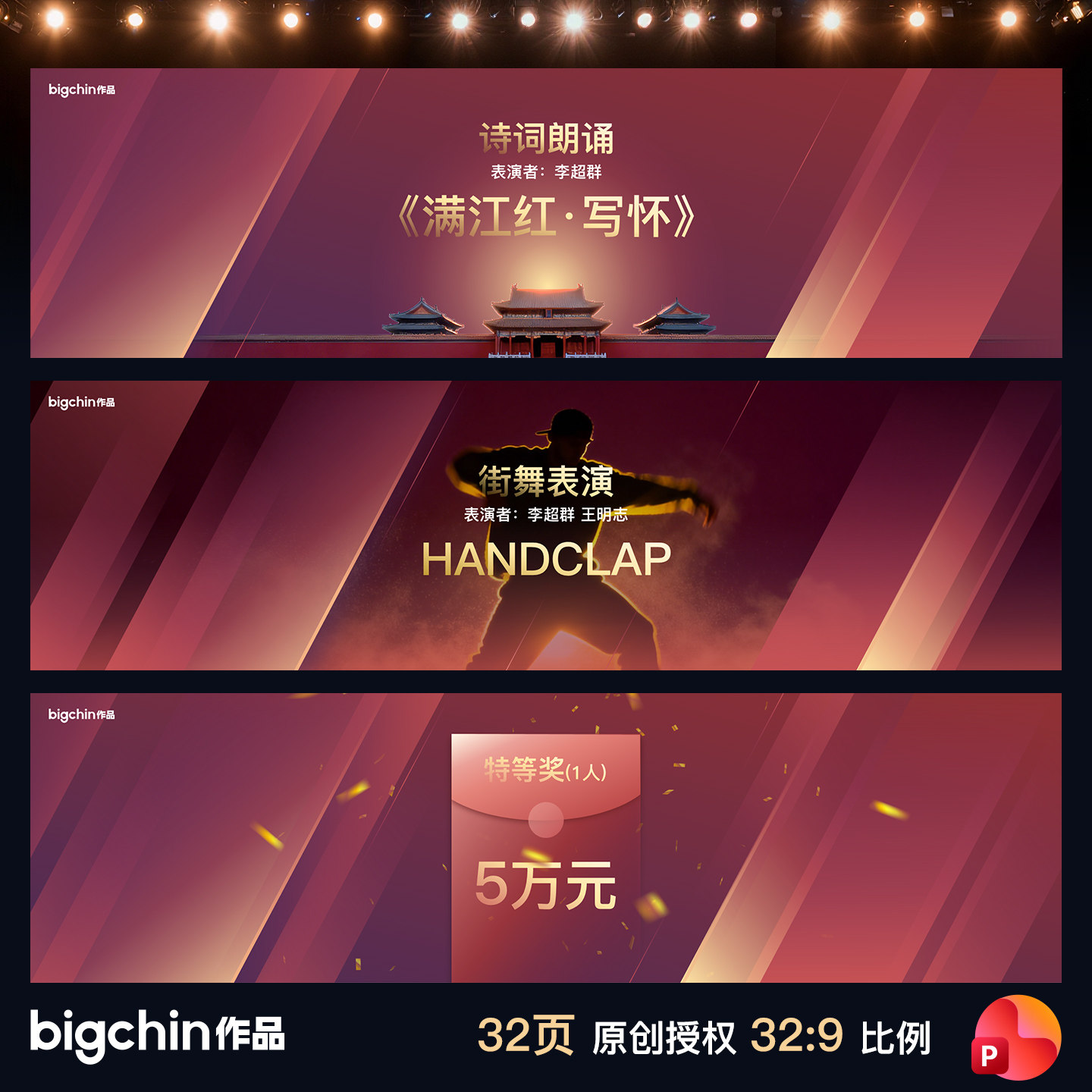 📚 bigchin原创PPT模板红得发紫年会峰会发布会高端会议32比9超宽屏