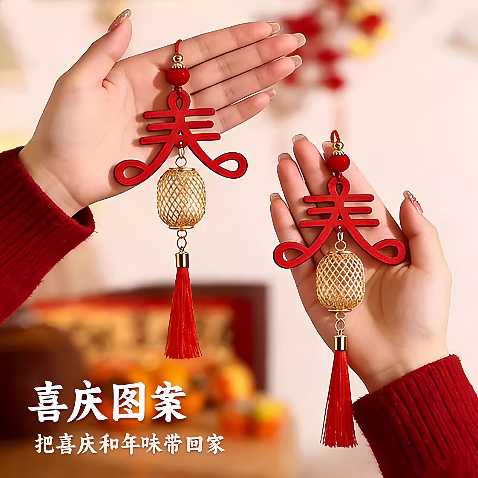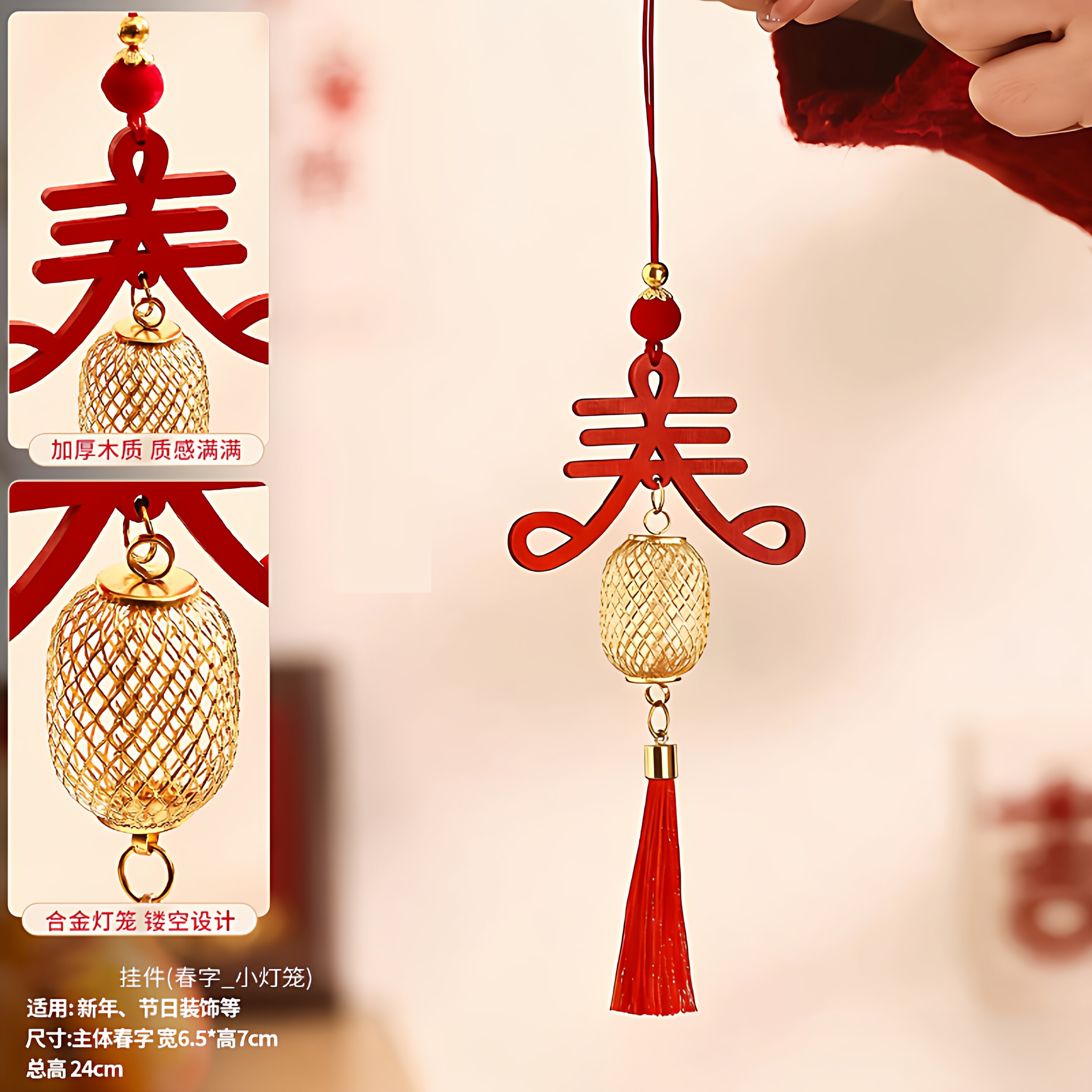 📚 新年红色木牌春字挂件金属灯笼球挂饰店铺客厅绿植小挂饰汽车挂件