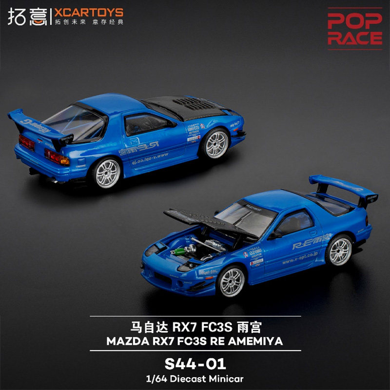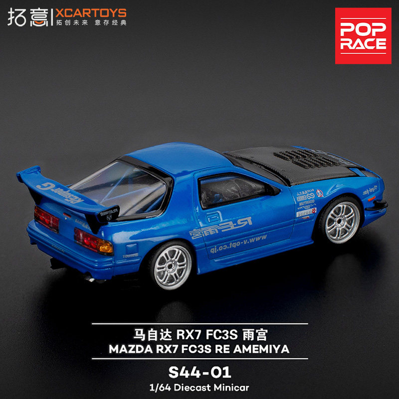 📚 拓意马自达RX7 FC3S雨宫蓝色车模 成人1/64合金车模型摆件POPRACE