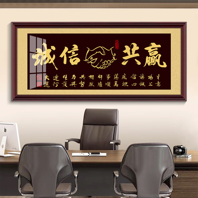 📚 合作共赢握手字画牌匾书法办公室励志挂画公司开业送礼挂匾装饰画