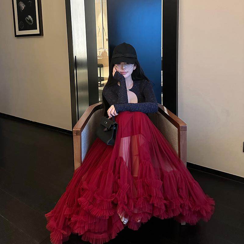 📚 MISS CHANGE【浮梦娇娃】2025新色琉璃红16米耗料蛋糕蓬蓬半身裙