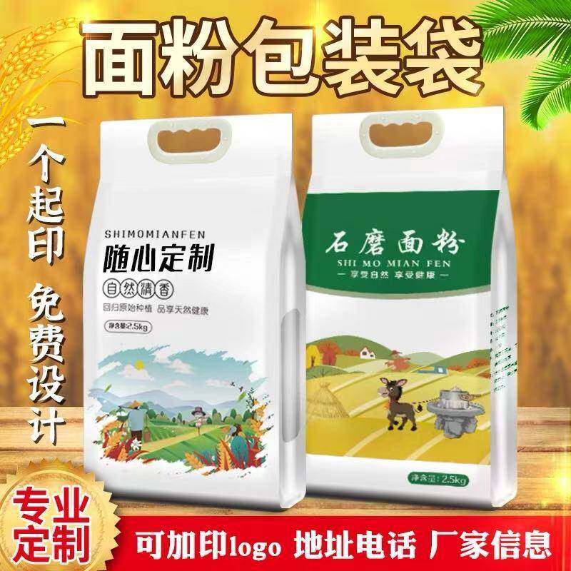 📚 石磨黑麦面粉包装袋5kg塑料面粉袋10斤手提袋面粉包装袋