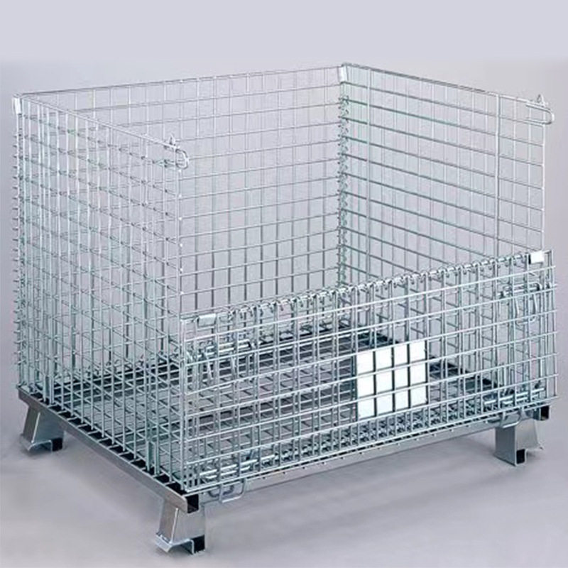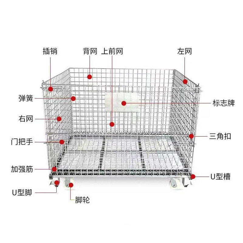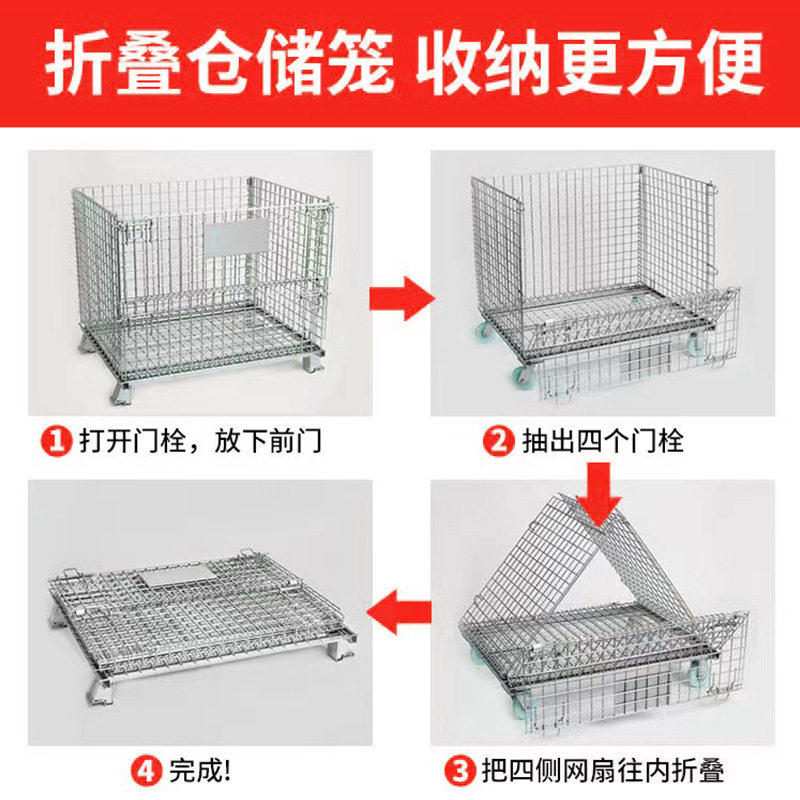 📚 折叠仓储笼仓库重型金属推车折叠式移动镀锌带轮周转箱货 架金属