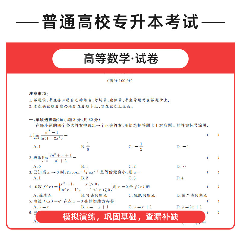57¥ MF287 jIU7UonHoxC¥ https://m.tb.cn/h.7CALAnC 库课全国专升本考试2026年高等数学模拟历年真题试卷全国统招专升本考试理科题库湖北湖南陕西吉林江西江苏安徽浙江复制资料2025 --------------------- 【原售价】170.8元 【现售价】27.8元。