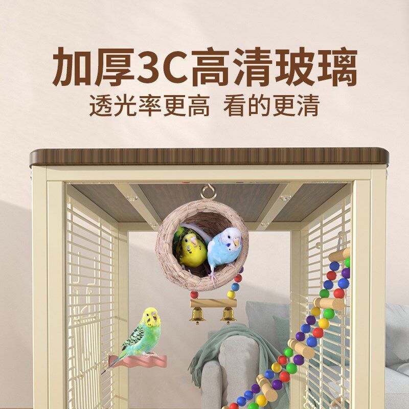 📚 威毕鹦鹉鸟笼高透玻璃横丝防溅虎皮玄凤牡丹家用豪华别墅繁殖笼子