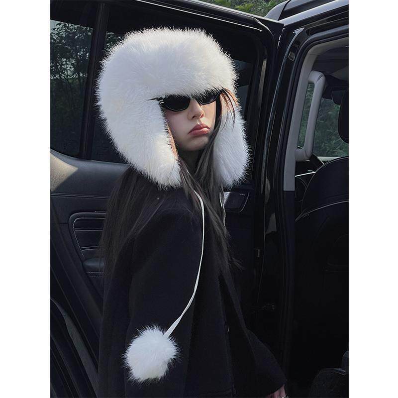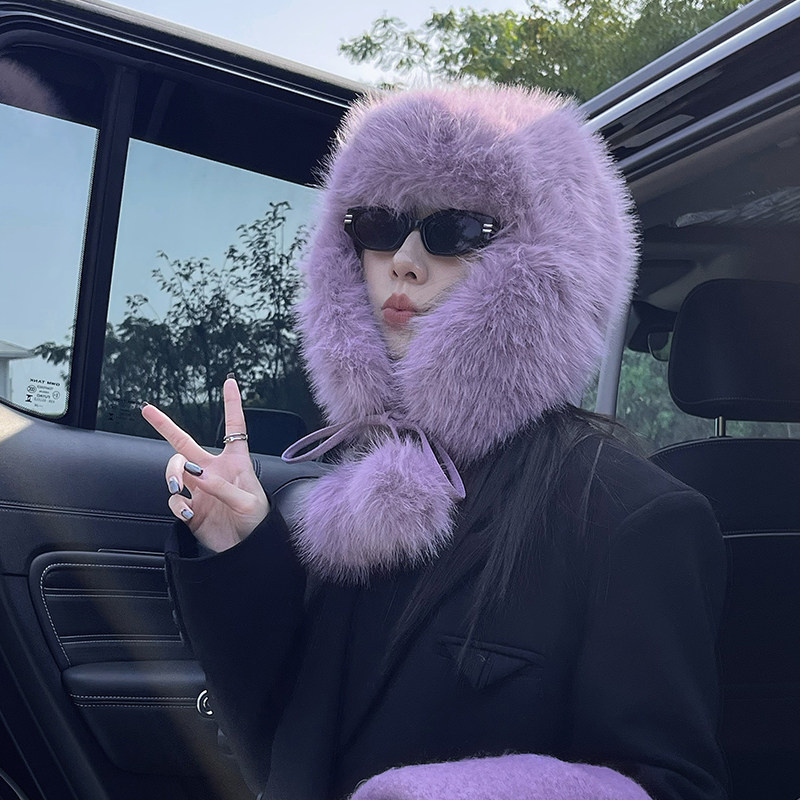 📚 TUshu/葡萄紫暖呼呼~秋冬毛绒雷锋帽子女保暖护耳东北旅游飞行帽
