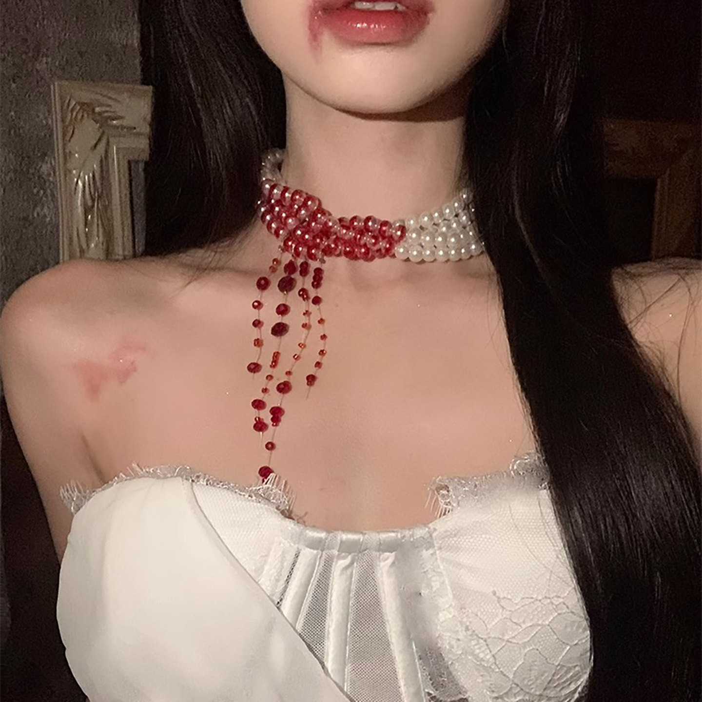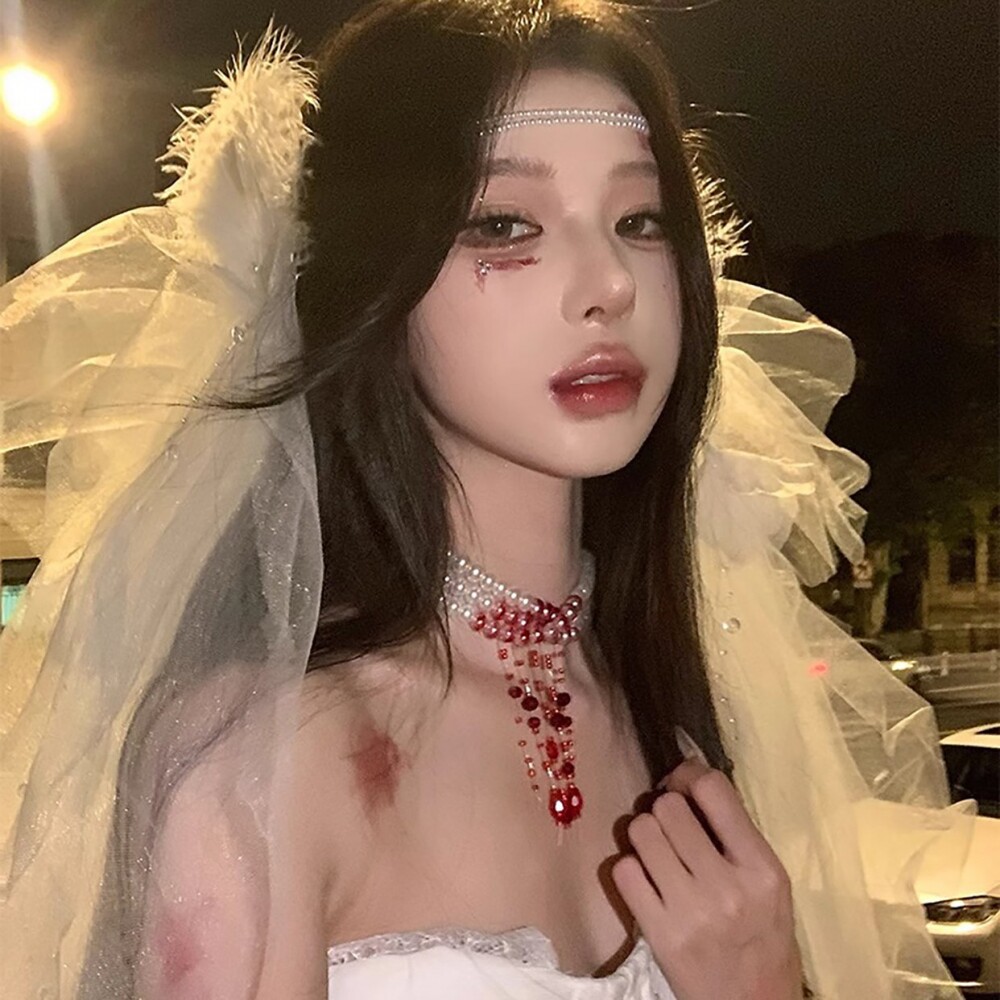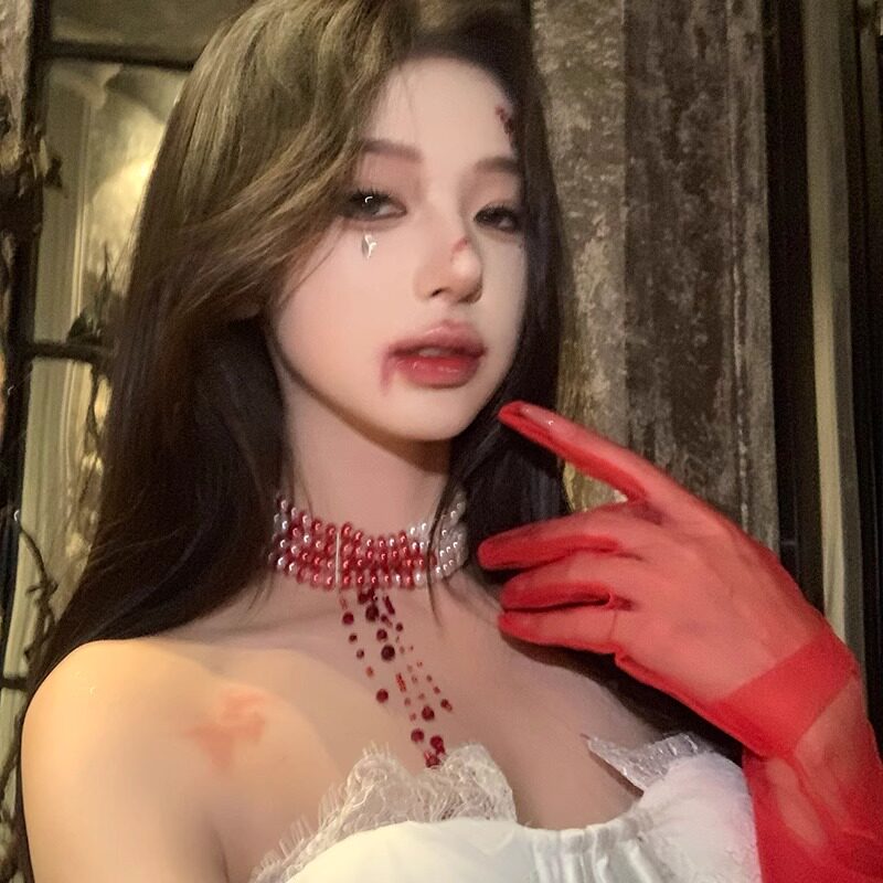 📚 万圣节滴血珍珠项链哥特红色多层chocker装饰品装扮妆造配饰道具