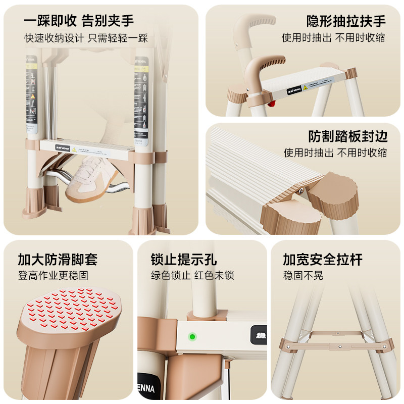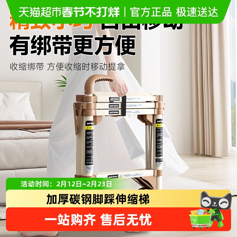 📚 稳纳家用折叠梯伸缩人字梯子踩踩乐多功能便携升降楼梯加厚铝合金