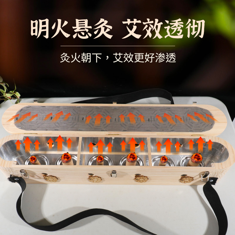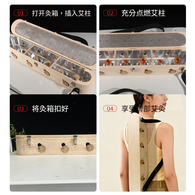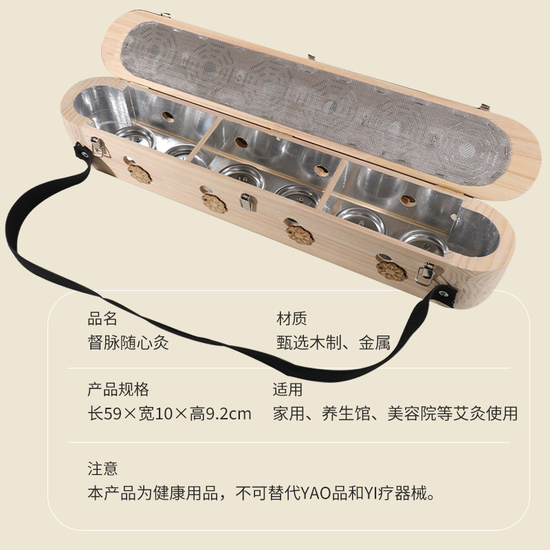📚 木质督脉艾灸箱背部专用工具家用背带式龙骨灸脊椎大号随身艾炙盒
