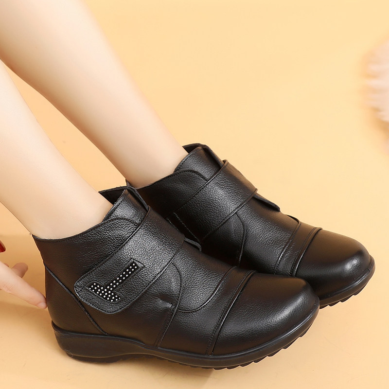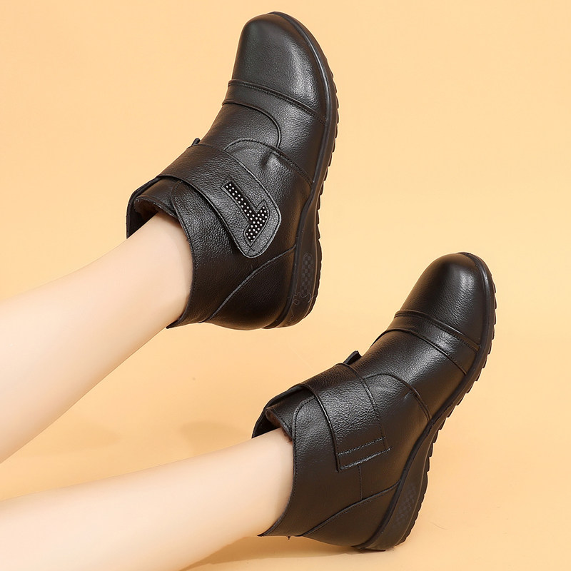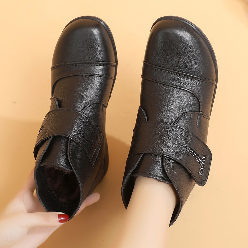 📚 东北羊毛老人棉鞋女冬加绒真皮短靴皮鞋中老年奶奶保暖防滑妈妈鞋