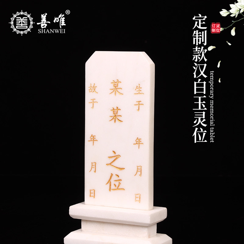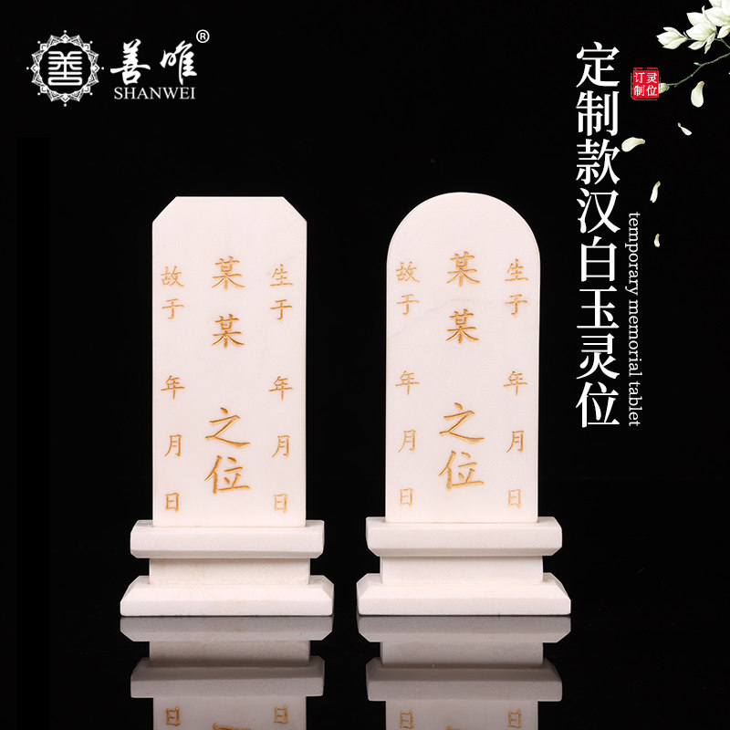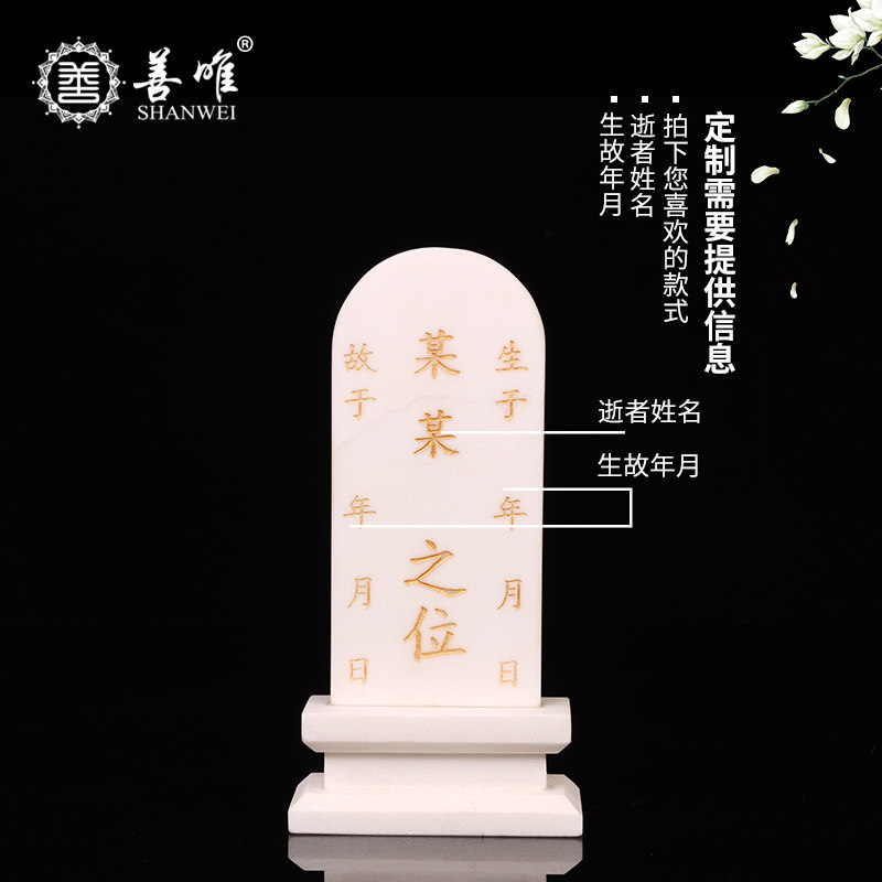 📚 善唯汉白玉灵位定制遗像祖先牌位描金随葬品摆件免费刻字灵堂用品