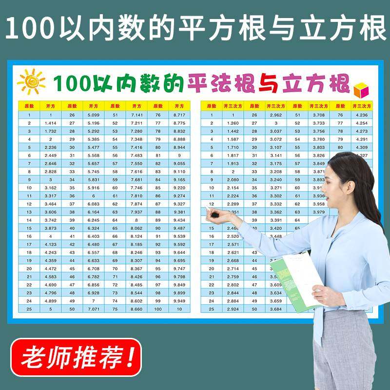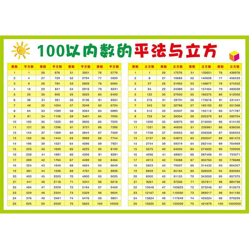📚 小学初中1-100平方表立方表平方根立方根乘方开方表速记背诵挂图