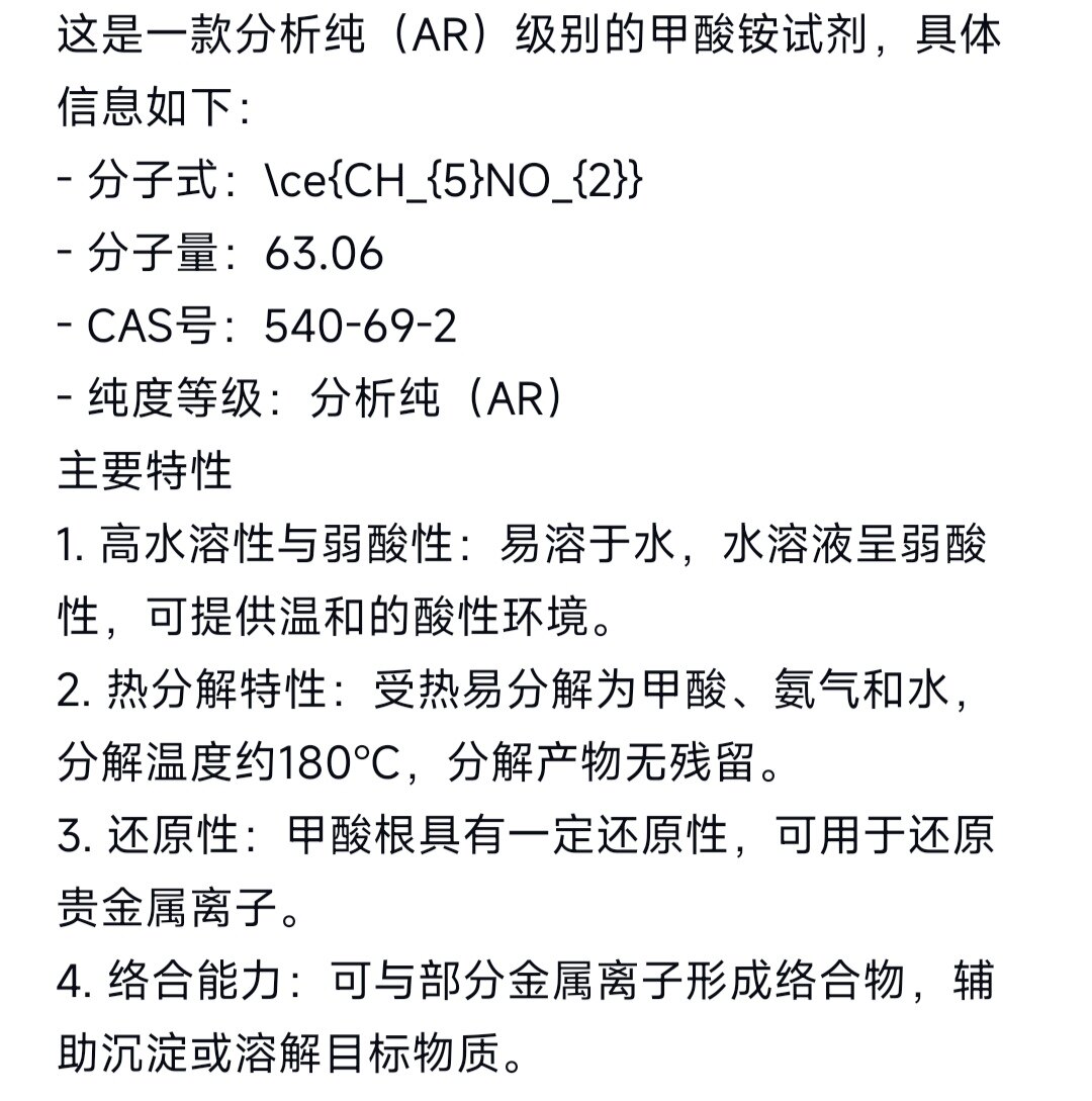 📚 科研专用甲酸铵 蚁酸铵试剂 甲酸铵盐 化学试剂分析纯AR 540-69-2