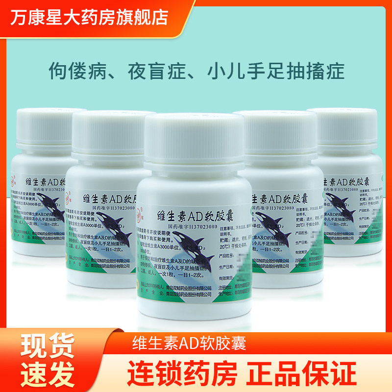 📚 包邮】 双鲸维生素AD软胶囊 100粒 夜盲症 佝偻病 小儿手足抽搐症