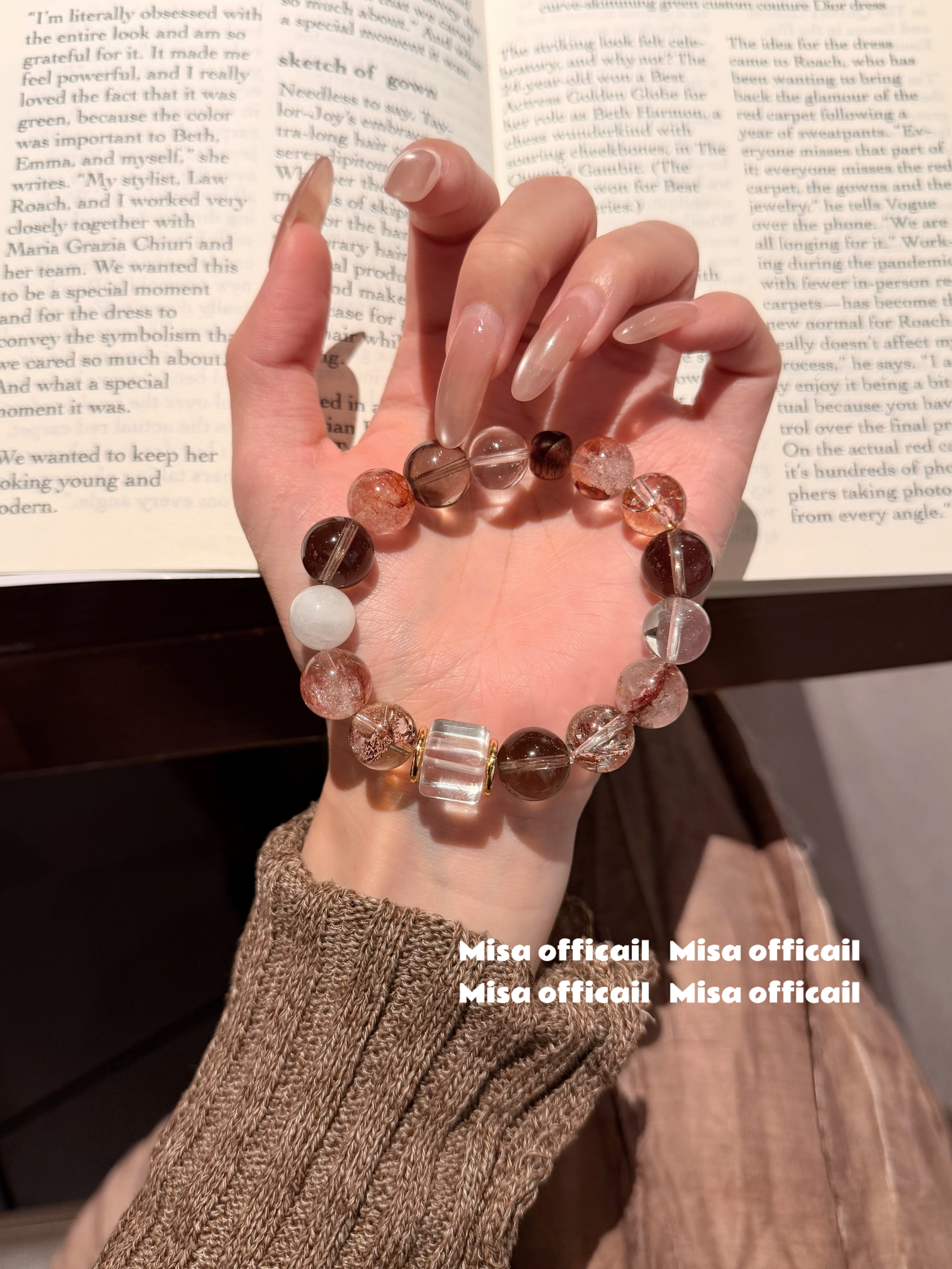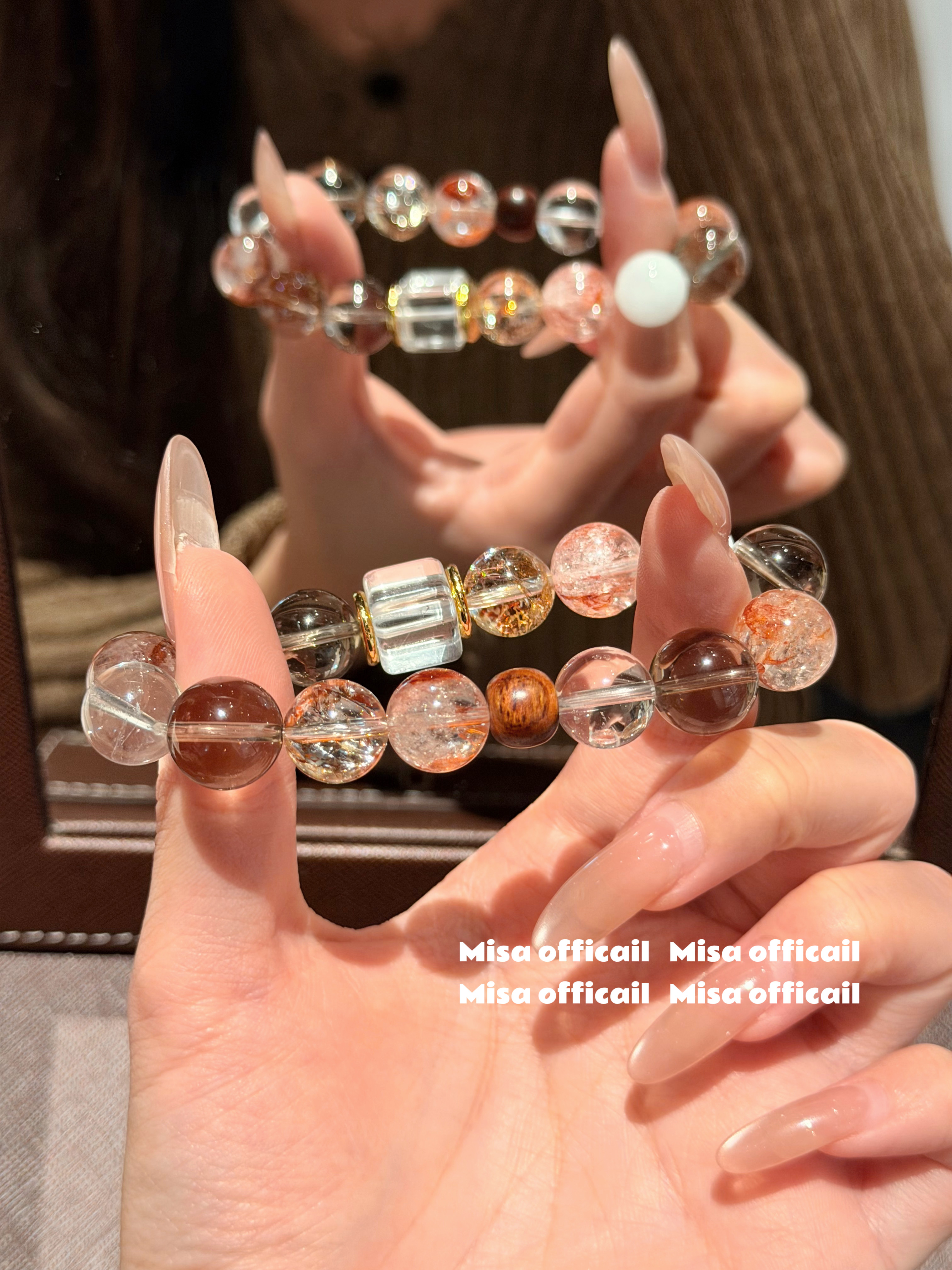 📚 雾野绯花|天然白水晶红胶花白幽灵茶晶黄花梨水晶手串手链送礼女