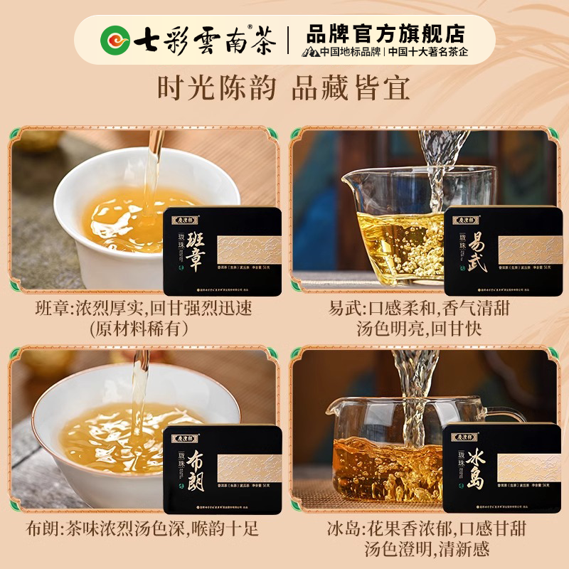 📚 七彩云南普洱茶名山龙珠普洱茶冰岛班章易武布朗普洱茶生茶便携茶