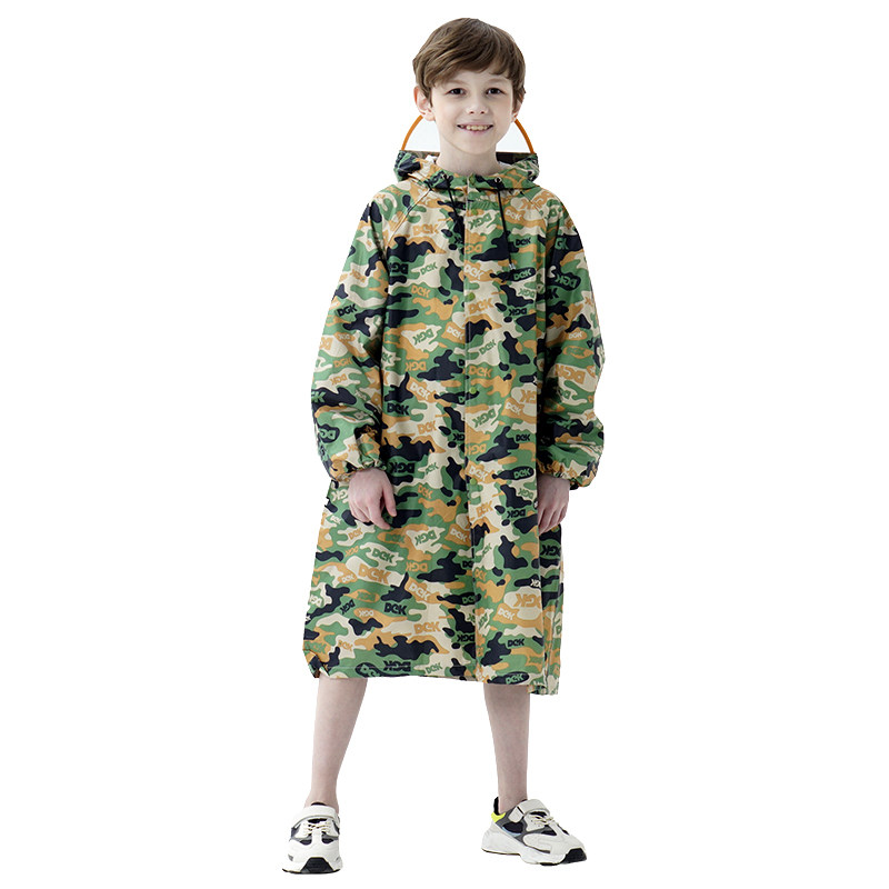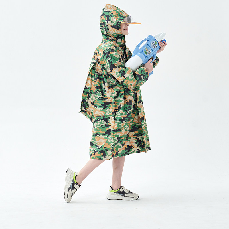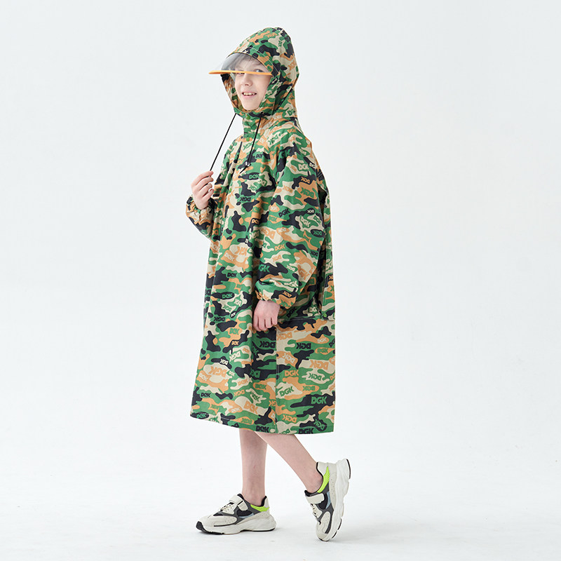 📚 雨衣儿童迷彩大背包位学生防水雨披小童加厚长款户外出行游玩外套