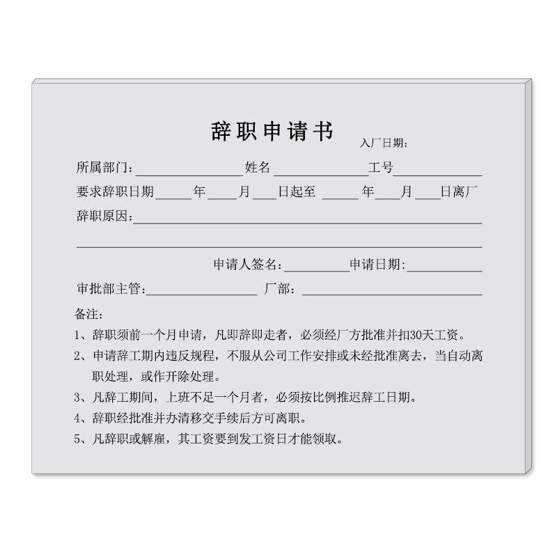 📚 辞职申请书离职申请单员工登记辞工表辞职报告离职声明书财务用品5本装55张/本