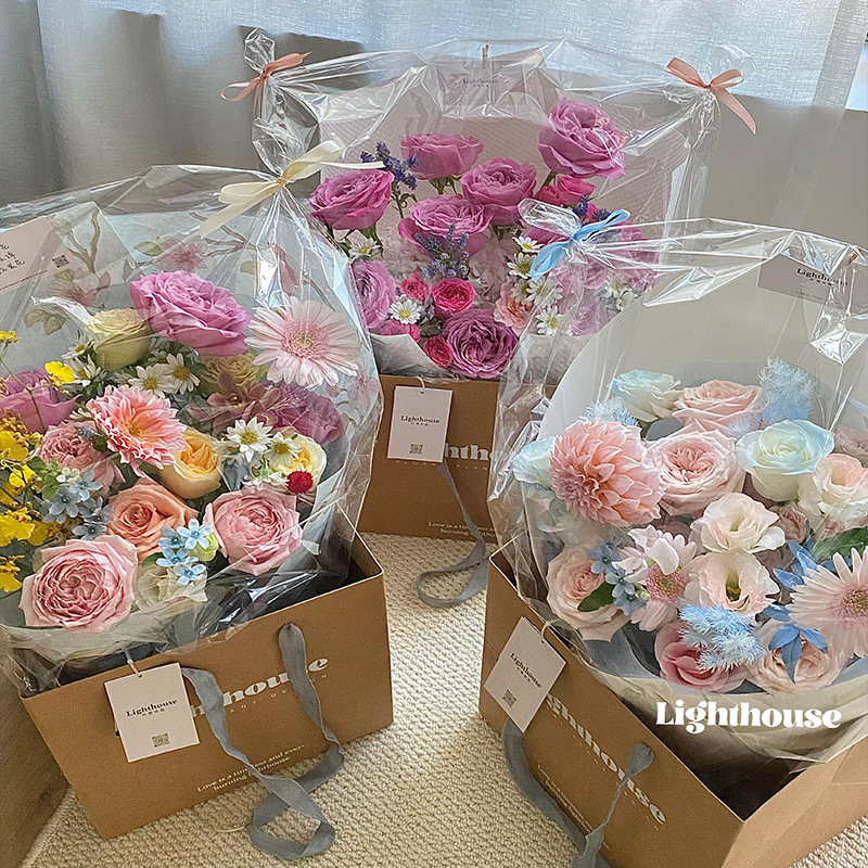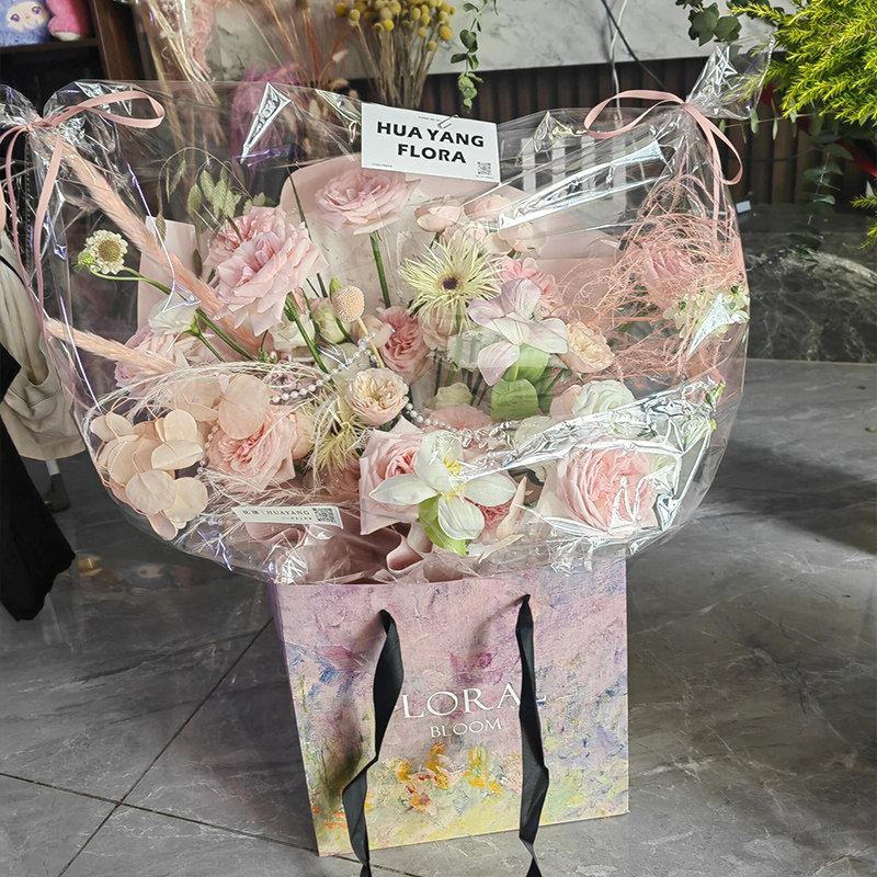 📚 包邮高透花束防尘袋透明玻璃纸套袋防雨放风送花鲜花包装花艺资材