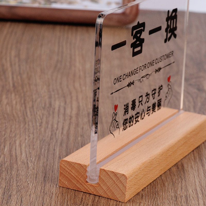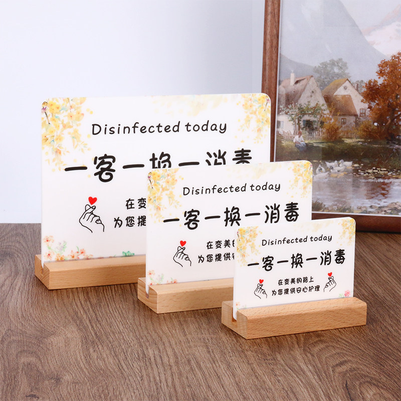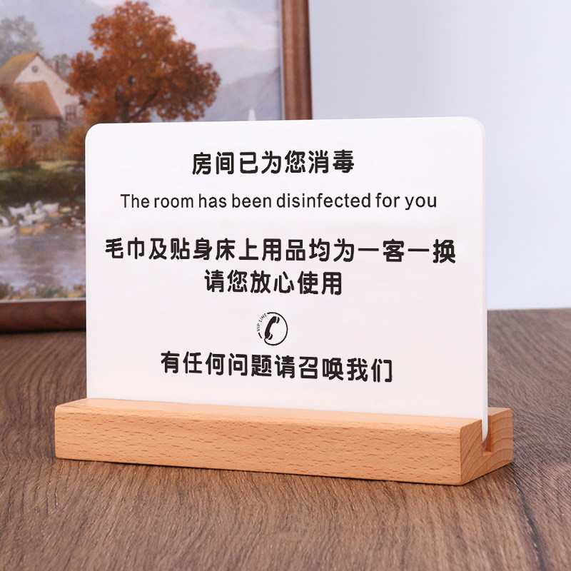 📚 实木亚克力今日已消毒标语一客一换一消毒美容院商场酒店宾馆房间工作室提示立牌毛巾床上用品更换清洁标识牌